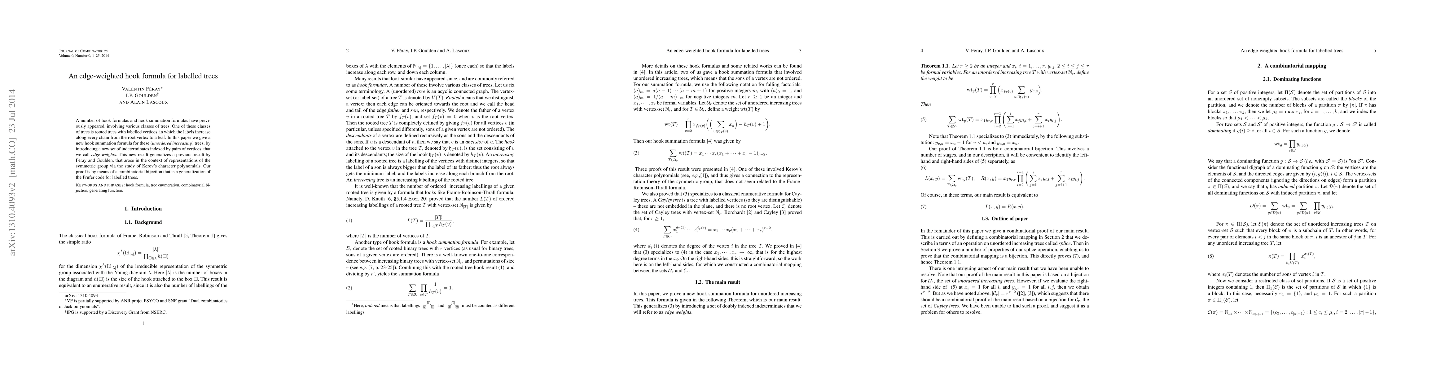 This paper introduces a new edge-weighted hook summation formula for rooted, labelled trees where vertex labels increase along every chain. The new formula generalizes previous results by F\'eray and Goulden, employing a combinatorial bijection that extends the Pr\'ufer code.
