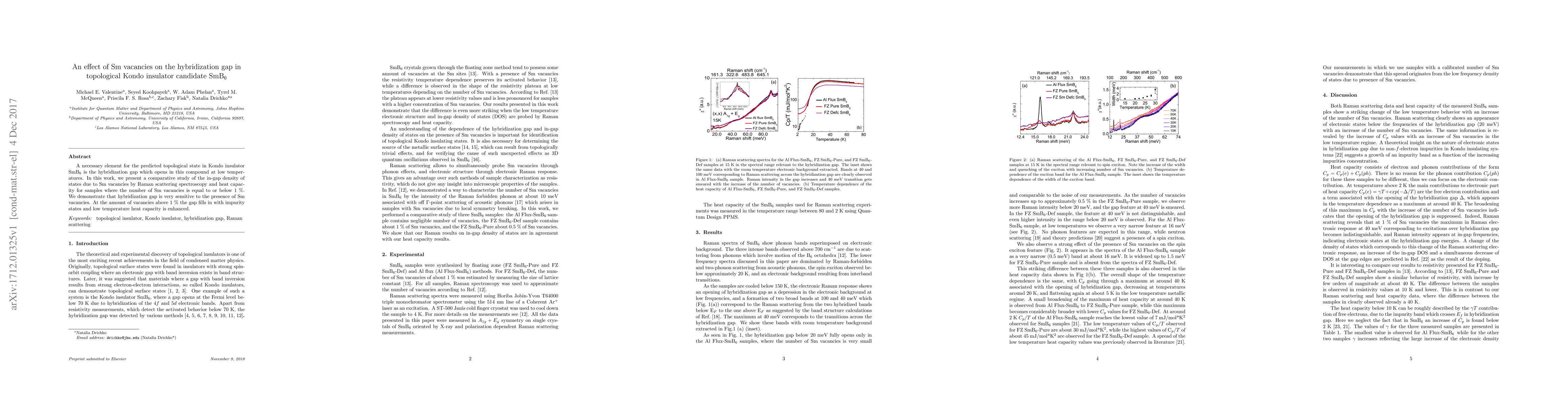 This study investigates the impact of Sm vacancies on the hybridization gap in the topological Kondo insulator candidate SmB$_6$ using Raman scattering and heat capacity. The results show that the hybridization gap is highly sensitive to Sm vacancies, filling in with impurity states and enhancing low-temperature heat capacity when vacancy concentrations exceed 1%.