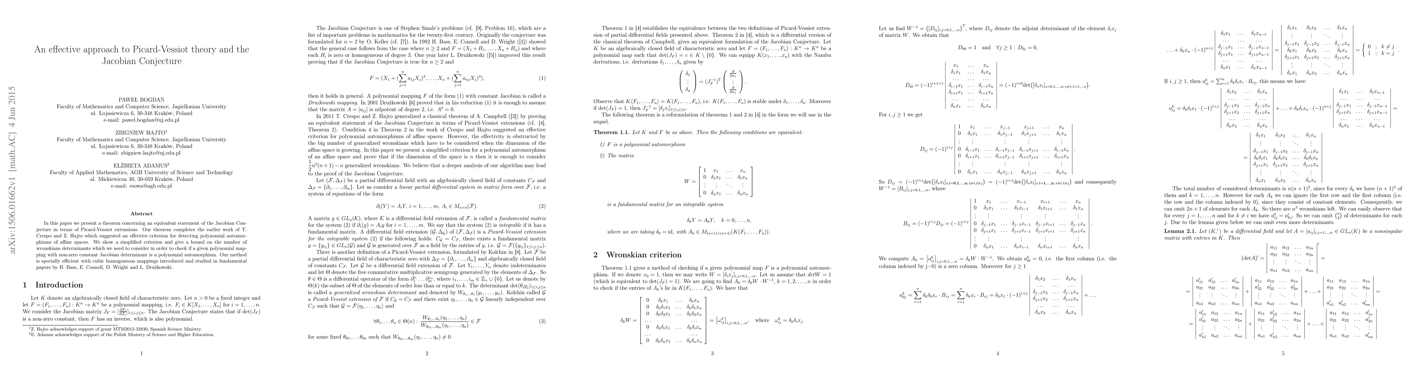 This paper establishes a new theorem linking the Jacobian Conjecture to Picard-Vessiot extensions, simplifying previous criteria for detecting polynomial automorphisms. It provides an efficient method, especially for cubic homogeneous mappings, with a bound on the required Wronskian determinants.