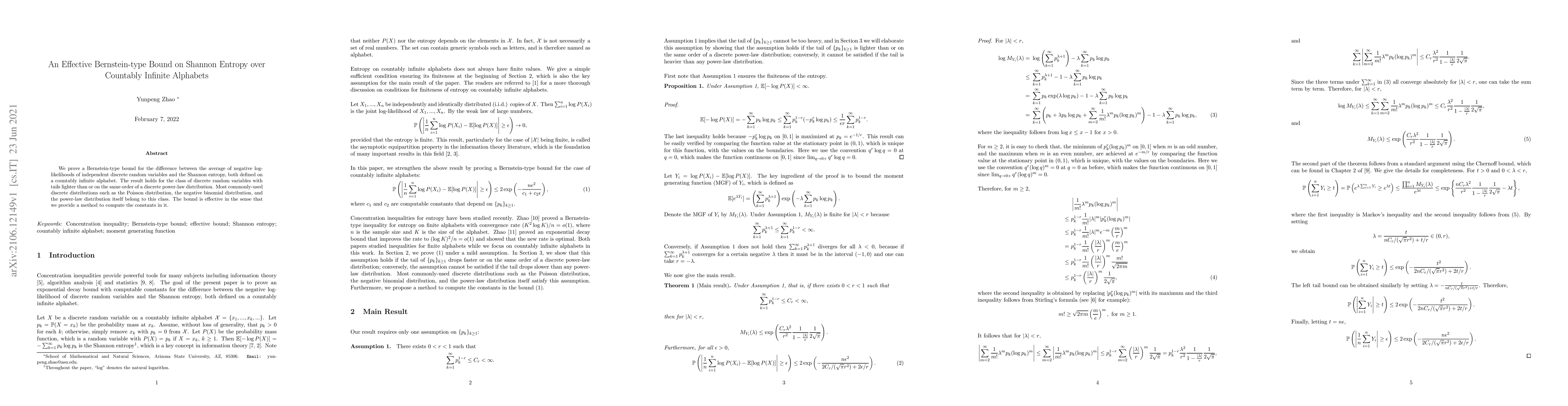 This paper proves a Bernstein-type bound for the difference between Shannon entropy and negative log-likelihoods of discrete random variables with tails lighter than or on the same order as a power-law distribution.
