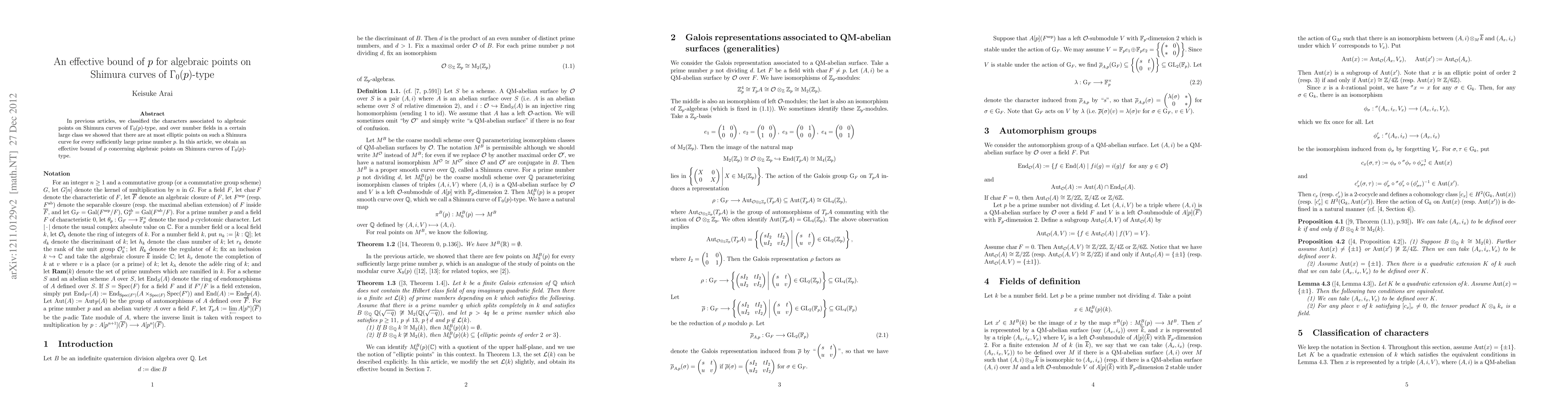 In previous articles, we classified the characters associated to algebraic points on Shimura curves of $\Gamma_0(p)$-type, and over number fields in a certain large class we showed that there are at most elliptic points on such a Shimura curve for every sufficiently large prime number $p$. In this article, we obtain an effective bound of $p$ concerning algebraic points on Shimura curves of $\Gamma_0(p)$-type.