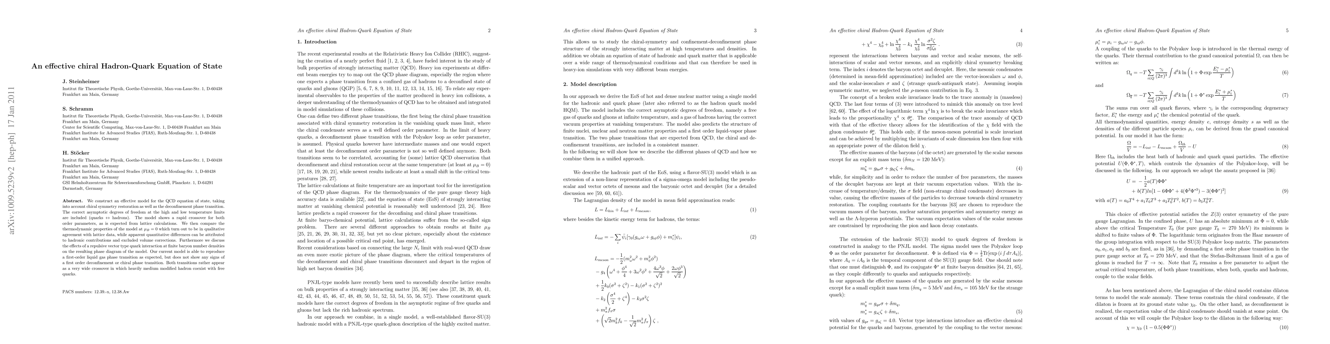 We construct an effective model for the QCD equation of state, taking into account chiral symmetry restoration as well as the deconfinement phase transition. The correct asymptotic degrees of freedom at the high and low temperature limits are included (quarks $\leftrightarrow$ hadrons). The model shows a rapid crossover for both order parameters, as is expected from lattice calculations. We then compare the thermodynamic properties of the model at $\mu_B=0$ which turn out to be in qualitative agreement with lattice data, while apparent quantitative differences can be attributed to hadronic contributions and excluded volume corrections. Furthermore we discuss the effects of a repulsive vector type quark interaction at finite baryon number densities on the resulting phase diagram of the model. Our current model is able to reproduce a first-order liquid gas phase transition as expected, but does not show any signs of a first order deconfinement or chiral phase transition. Both transitions rather appear as a very wide crossover in which heavily medium modified hadron coexist with free quarks.