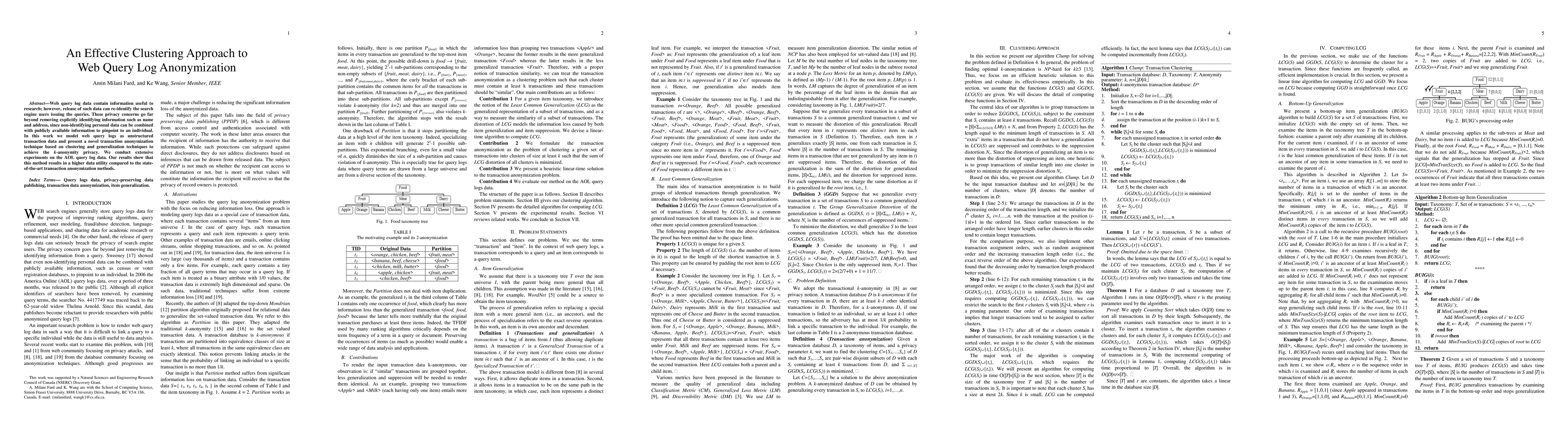 Researchers developed a novel method for anonymizing web query logs through clustering and generalization techniques to achieve k-anonymity privacy, achieving higher data utility than existing methods.