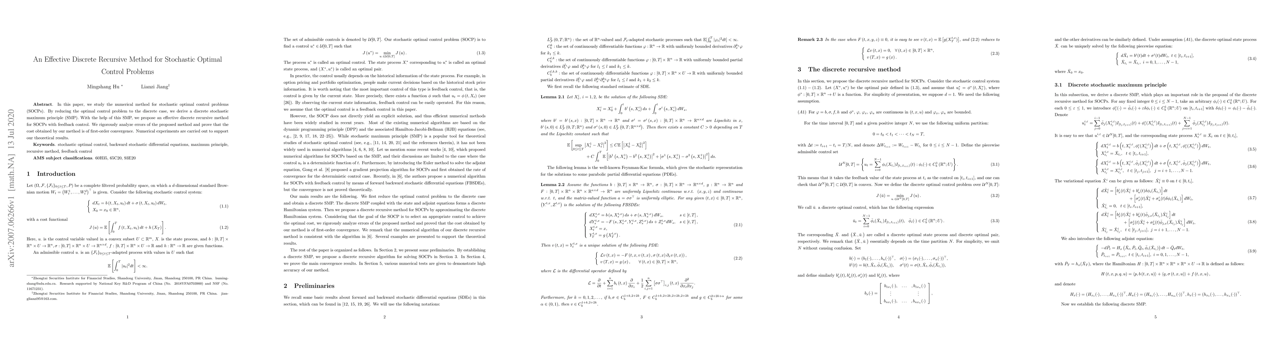 This paper proposes an effective discrete recursive method for solving stochastic optimal control problems (SOCPs) by deriving a discrete stochastic maximum principle (SMP). The method demonstrates first-order convergence, supported by rigorous error analysis and numerical experiments.