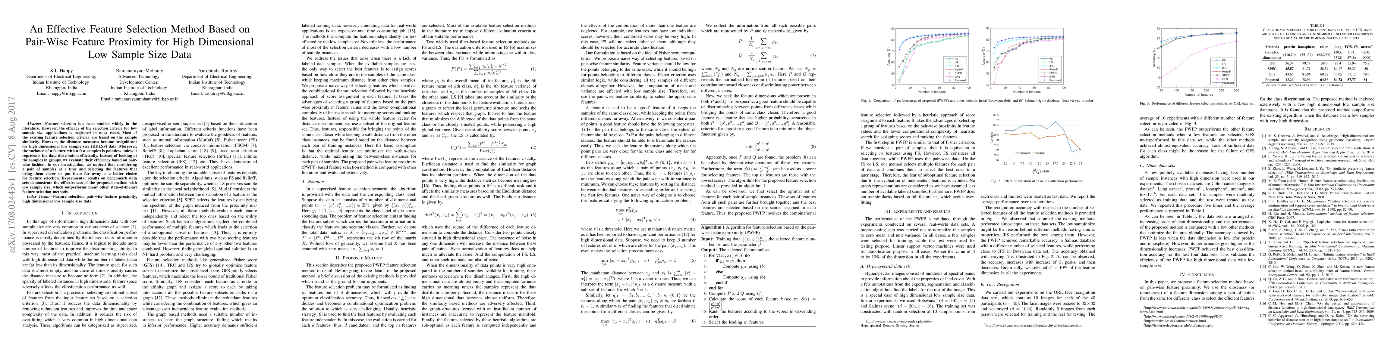 This paper proposes a novel feature selection method based on pairwise feature proximity for high-dimensional low sample size (HDLSS) data. The method outperforms existing techniques by evaluating features based on how well they differentiate pairs of samples, rather than relying on sample similarity measures.