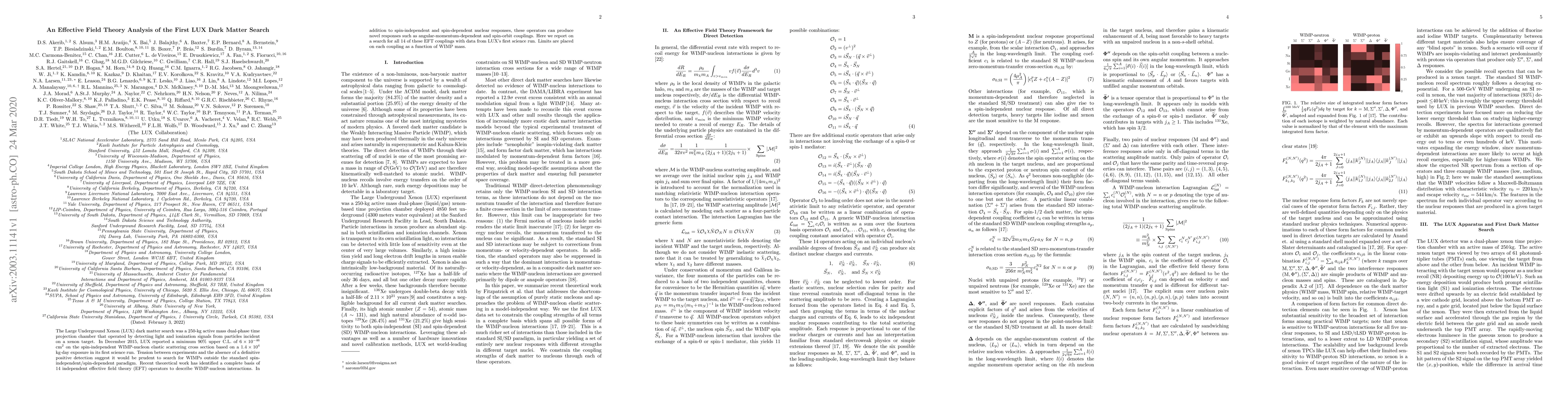 The LUX dark matter search utilized a 250-kg xenon detector to set a minimum 90% upper limit on spin-independent WIMP-nucleon interactions. This study extends the analysis to include all 14 independent effective field theory operators, providing new limits on various WIMP-nucleon couplings beyond traditional spin-independent and spin-dependent interactions.