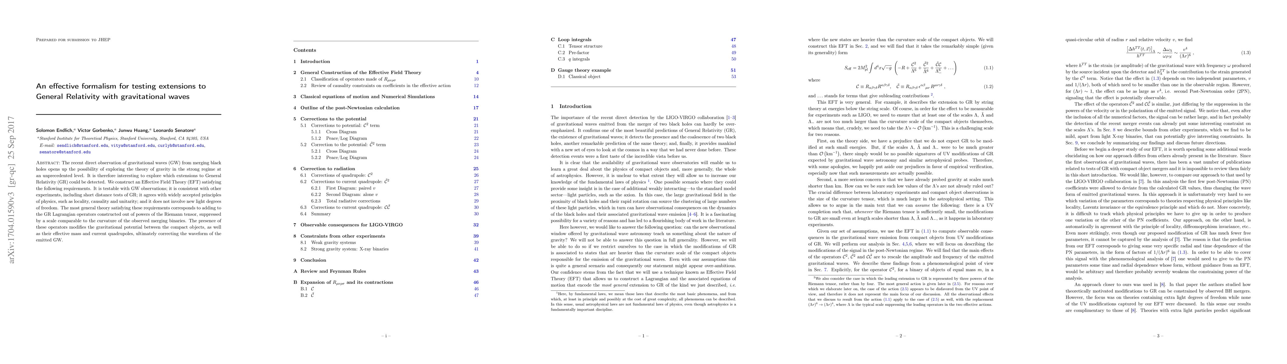 The recent direct observation of gravitational waves (GW) from merging black holes opens up the possibility of exploring the theory of gravity in the strong regime at an unprecedented level. It is therefore interesting to explore which extensions to General Relativity (GR) could be detected. We construct an Effective Field Theory (EFT) satisfying the following requirements. It is testable with GW observations; it is consistent with other experiments, including short distance tests of GR; it agrees with widely accepted principles of physics, such as locality, causality and unitarity; and it does not involve new light degrees of freedom. The most general theory satisfying these requirements corresponds to adding to the GR Lagrangian operators constructed out of powers of the Riemann tensor, suppressed by a scale comparable to the curvature of the observed merging binaries. The presence of these operators modifies the gravitational potential between the compact objects, as well as their effective mass and current quadrupoles, ultimately correcting the waveform of the emitted GW.