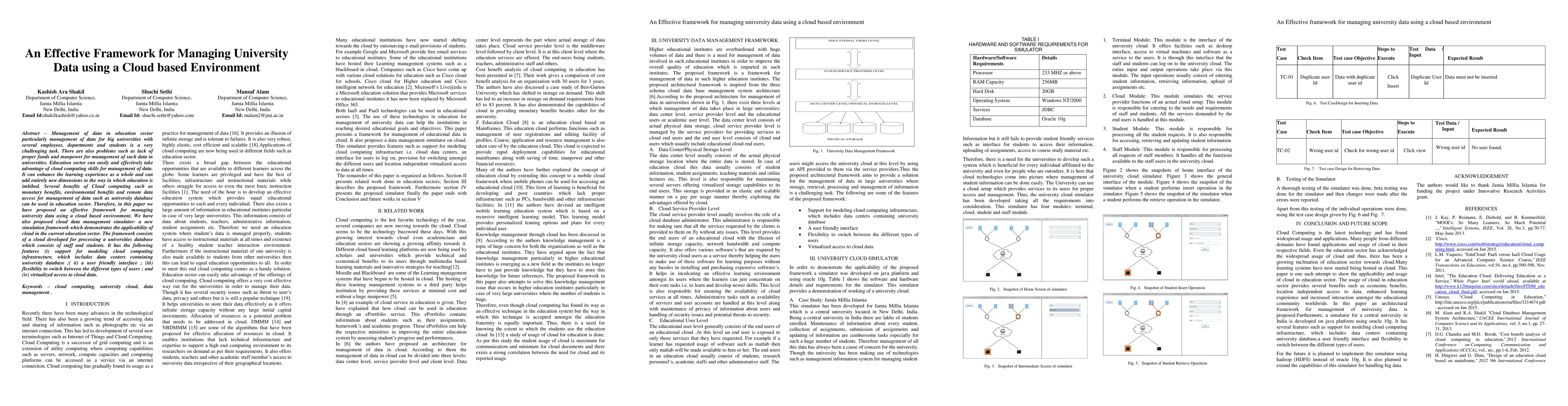 This paper proposes an effective framework for managing university data using cloud computing, highlighting benefits such as cost savings, environmental advantages, and remote access. The framework includes a simulator demonstrating cloud's applicability in education, featuring a user-friendly interface and flexibility for different user types.