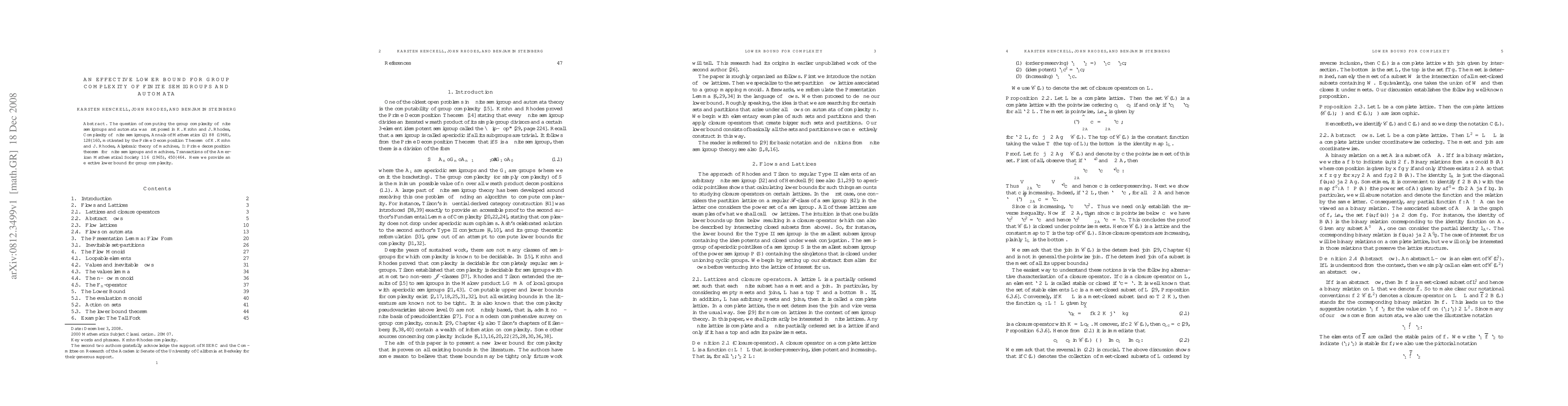 The question of computing the group complexity of finite semigroups and automata was first posed in K. Krohn and J. Rhodes, \textit{Complexity of finite semigroups}, Annals of Mathematics (2) \textbf{88} (1968), 128--160, motivated by the Prime Decomposition Theorem of K. Krohn and J. Rhodes, \textit{Algebraic theory of machines, {I}: {P}rime decomposition theorem for finite semigroups and machines}, Transactions of the American Mathematical Society \textbf{116} (1965), 450--464. Here we provide an effective lower bound for group complexity.