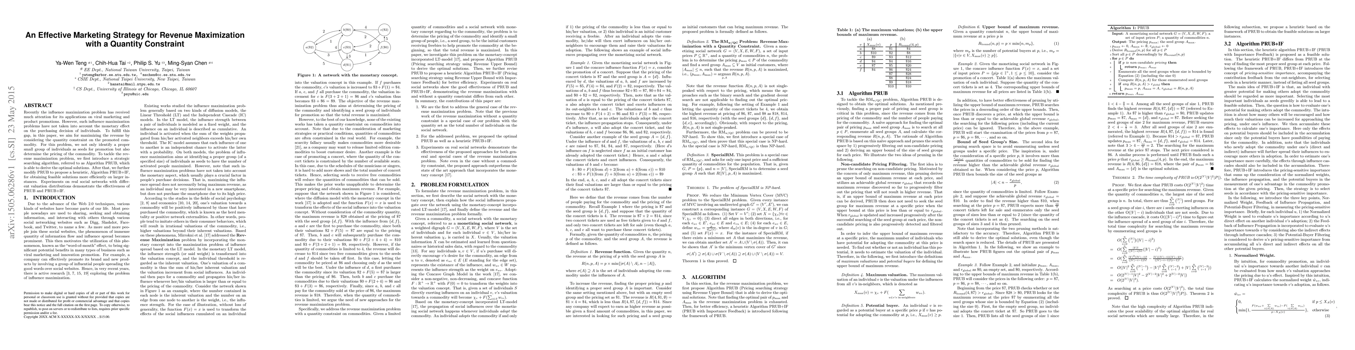 This paper proposes two algorithms to maximize revenue from marketing a product with a quantity constraint, using real social networks and demonstrating their effectiveness in various experiments.