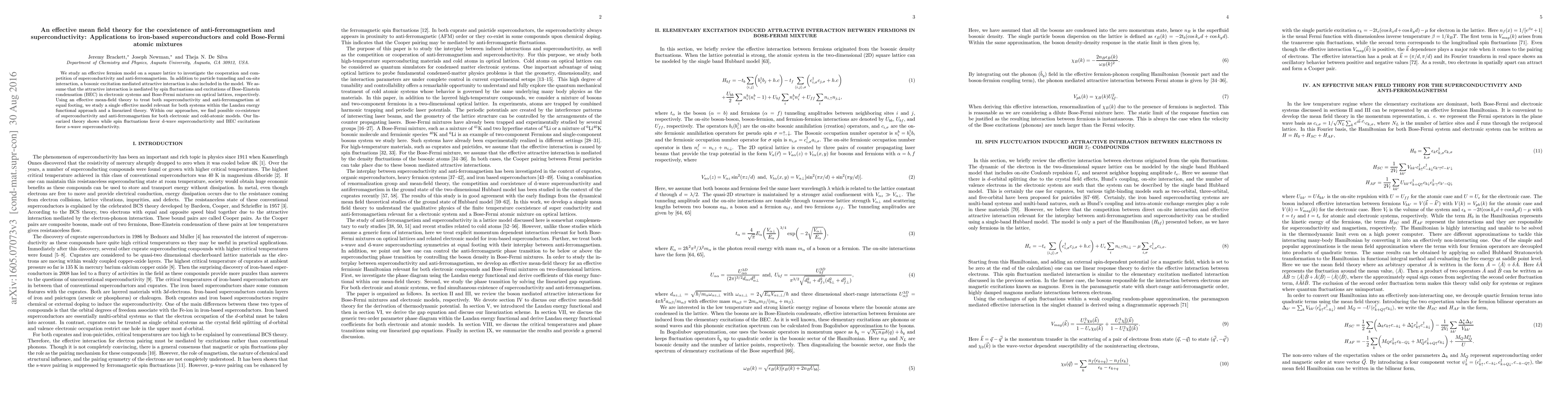 We study an effective fermion model on a square lattice to investigate the cooperation and competition of superconductivity and anti-ferromagnetism. In addition to particle tunneling and on-site interaction, a bosonic excitation mediated attractive interaction is also included in the model. We assume that the attractive interaction is mediated by spin fluctuations and excitations of Bose-Einstein condensation (BEC) in electronic systems and Bose-Fermi mixtures on optical lattices, respectively. Using an effective mean-field theory to treat both superconductivity and anti-ferromagnetism at equal footing, we study the model within the Landau energy functional approach and a linearized theory. Within our approaches, we find possible co-existence of superconductivity and anti-ferromagnetism for both electronic and cold-atomic models. Our linearized theory shows while spin fluctuations favor d-wave superconductivity and BEC excitations favor s-wave superconductivity.