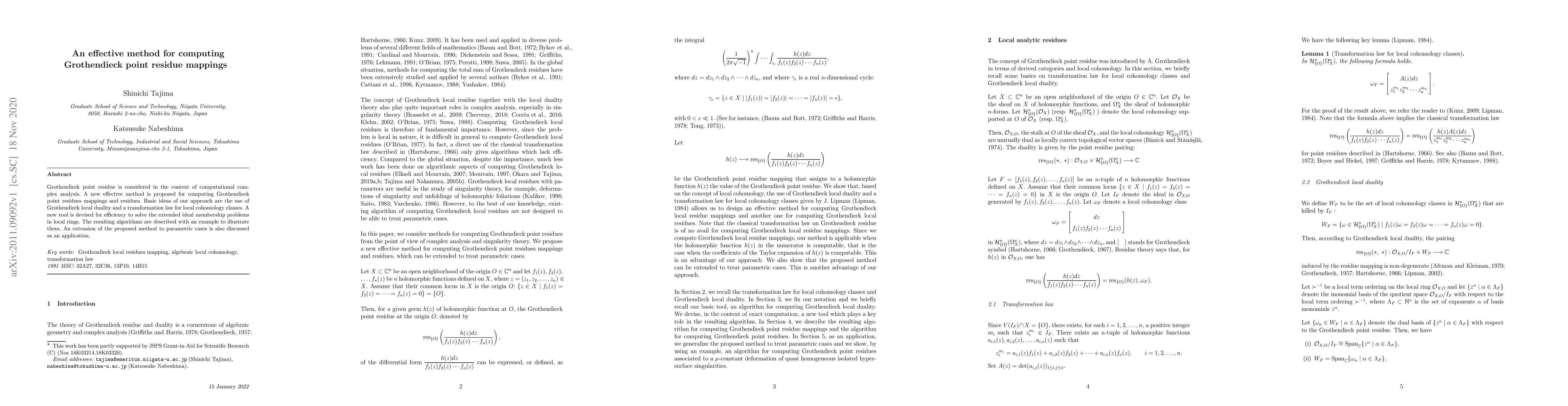This paper proposes a new effective method for computing Grothendieck point residues using Grothendieck local duality and a transformation law for local cohomology classes, along with a tool for solving extended ideal membership problems. The method is demonstrated through an example and extended to parametric cases.