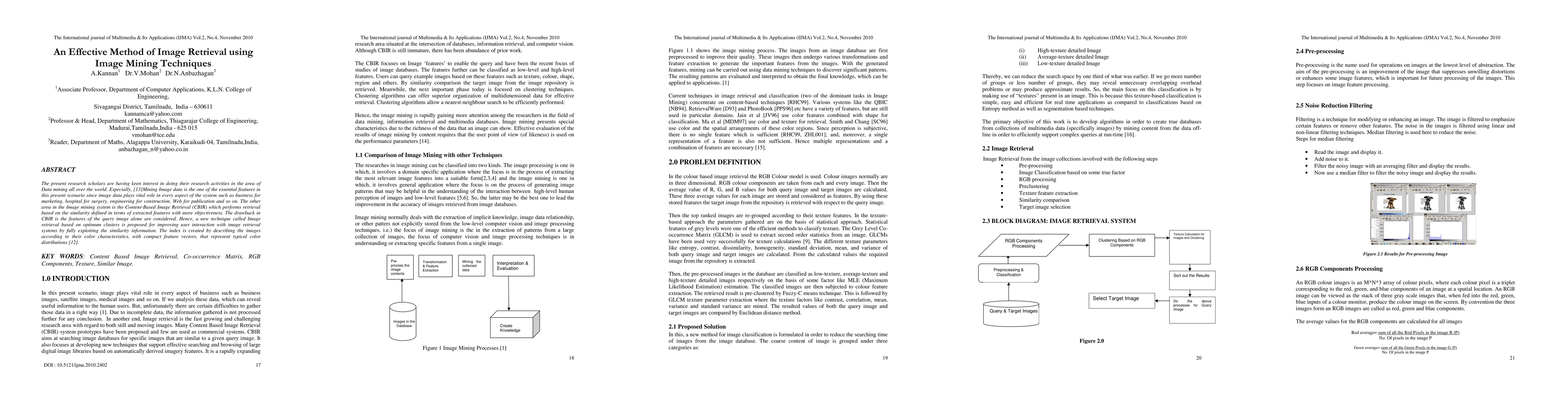 This paper proposes a novel method for image retrieval using image mining techniques, specifically focusing on Content-Based Image Retrieval (CBIR). It aims to enhance user interaction by creating an index based on color characteristics and compact feature vectors to improve the retrieval process beyond query image features alone.