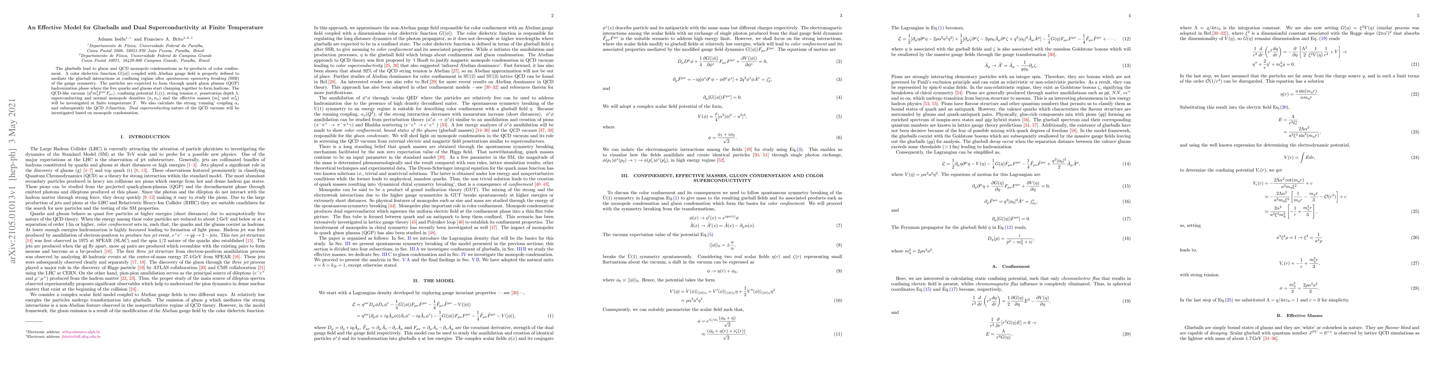 This paper proposes a model for understanding glueballs and dual superconductivity in QCD at finite temperature, defining a color dielectric function to mediate interactions post-SSB, and investigates various QCD-related parameters like vacuum, potential, and monopole densities. It also examines the dual superconducting nature of the QCD vacuum through monopole condensation.