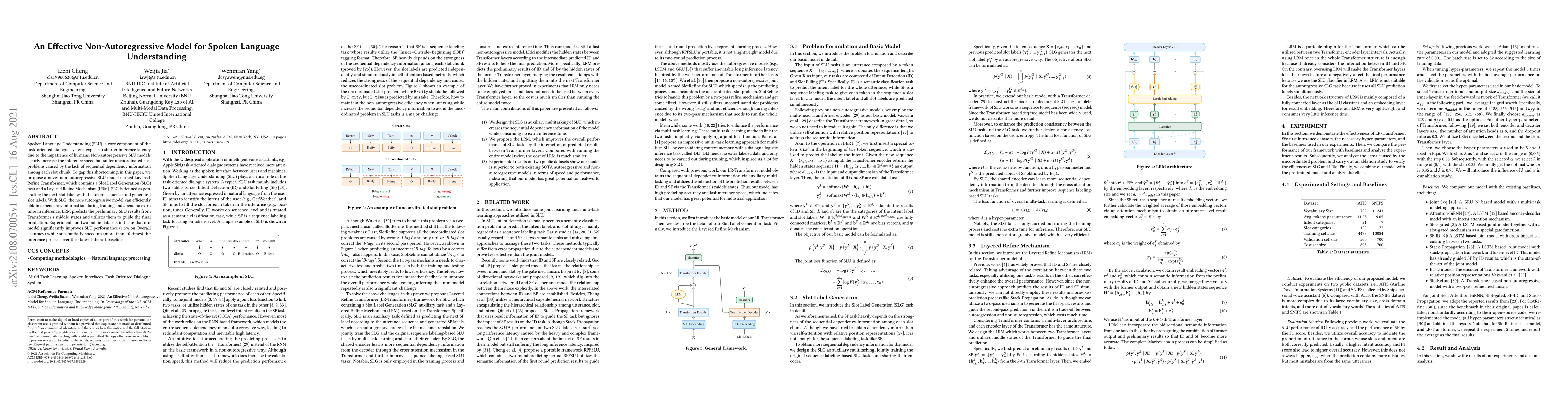 The paper proposes a novel non-autoregressive model, Layered-Refine Transformer (LR-Transformer), for Spoken Language Understanding (SLU) that addresses the uncoordinated-slot problem by incorporating a Slot Label Generation (SLG) task and a Layered Refine Mechanism (LRM).