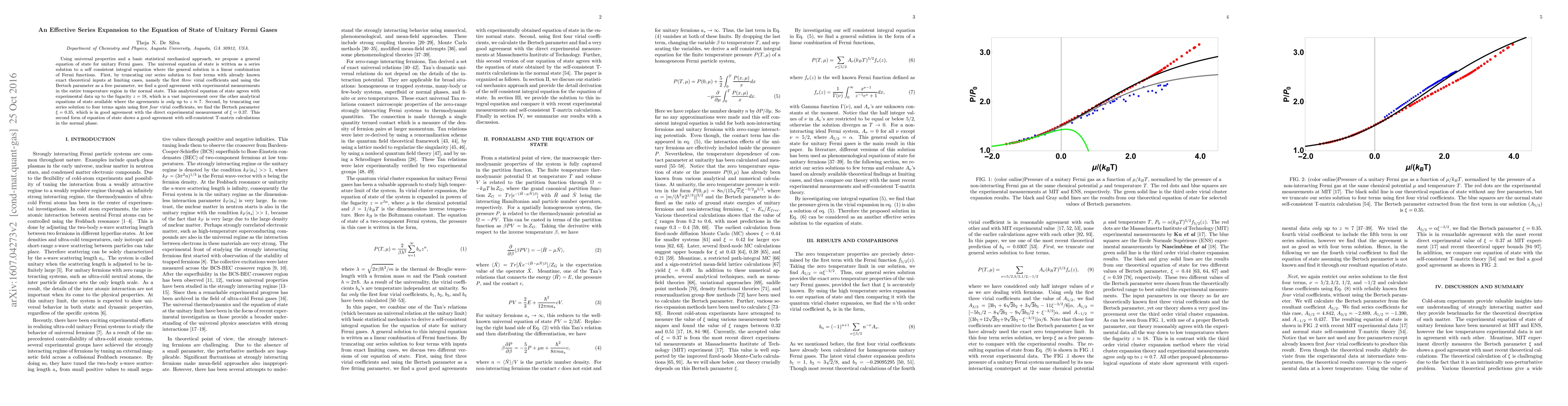 This paper proposes a new series expansion for the equation of state of unitary Fermi gases, achieving better agreement with experimental data up to a higher fugacity compared to existing models. The series solution, truncated to four terms, aligns well with both theoretical inputs and experimental measurements.