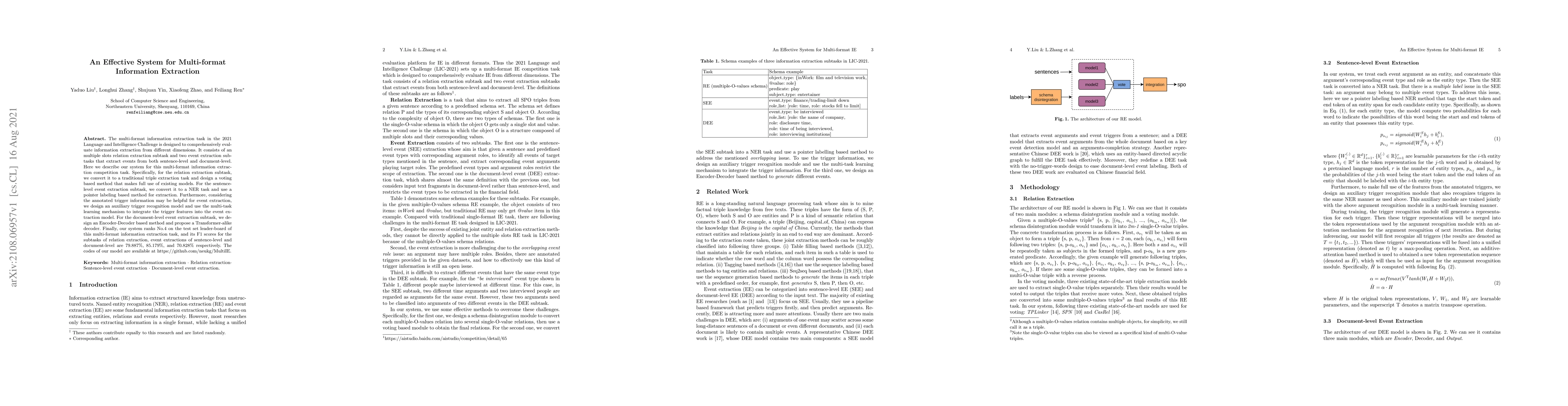 A research paper presents a system for multi-format information extraction that achieves high F1 scores in three subtasks, ranking No. 4 overall, and demonstrates the effectiveness of voting-based methods and multi-task learning.