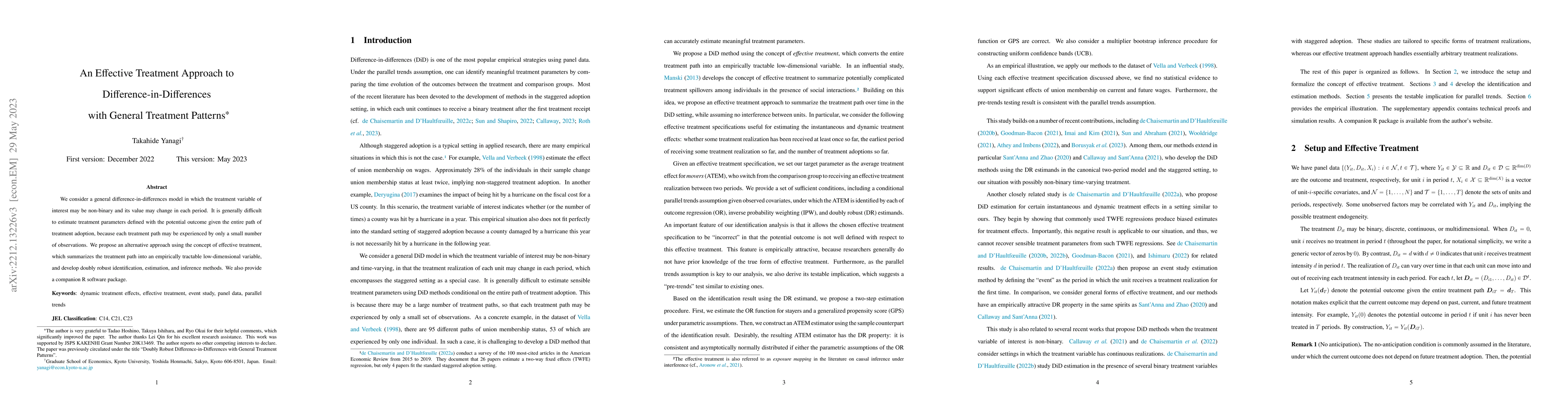 We consider a general difference-in-differences model in which the treatment variable of interest may be non-binary and its value may change in each period. It is generally difficult to estimate treatment parameters defined with the potential outcome given the entire path of treatment adoption, because each treatment path may be experienced by only a small number of observations. We propose an alternative approach using the concept of effective treatment, which summarizes the treatment path into an empirically tractable low-dimensional variable, and develop doubly robust identification, estimation, and inference methods. We also provide a companion R software package.