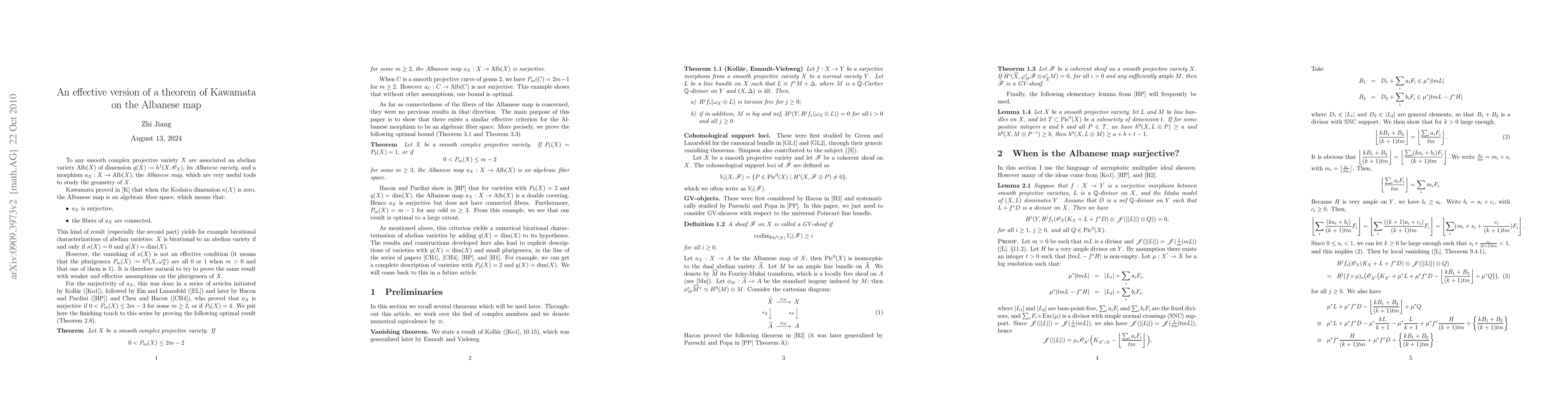 This paper generalizes a theorem by Kawamata to determine the conditions under which the Albanese map is surjective and to establish when it functions as an algebraic fiber space, focusing on the birational properties of the Albanese map.