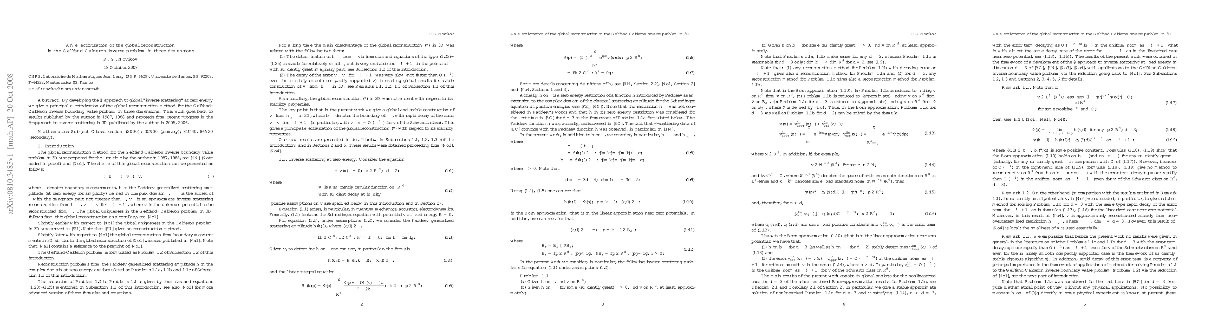 This paper presents an effective method for reconstructing the global solution to the Gel'fand-Calderon inverse boundary value problem in three dimensions using the d-bar approach to inverse scattering at zero energy, building on the author's earlier work and recent advancements.