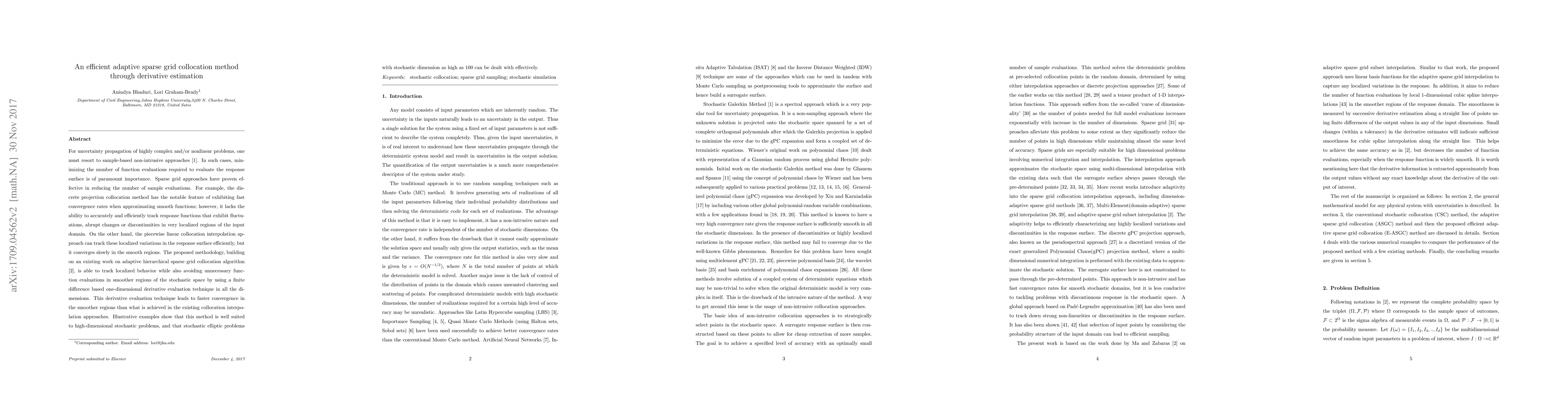 This paper proposes an efficient adaptive sparse grid collocation method that combines the benefits of discrete projection and piecewise linear collocation to handle both smooth and fluctuating response functions. By employing a finite difference-based derivative estimation technique, the method achieves faster convergence in smooth regions while accurately tracking localized variations, thus minimizing the number of function evaluations for high-dimensional stochastic problems.