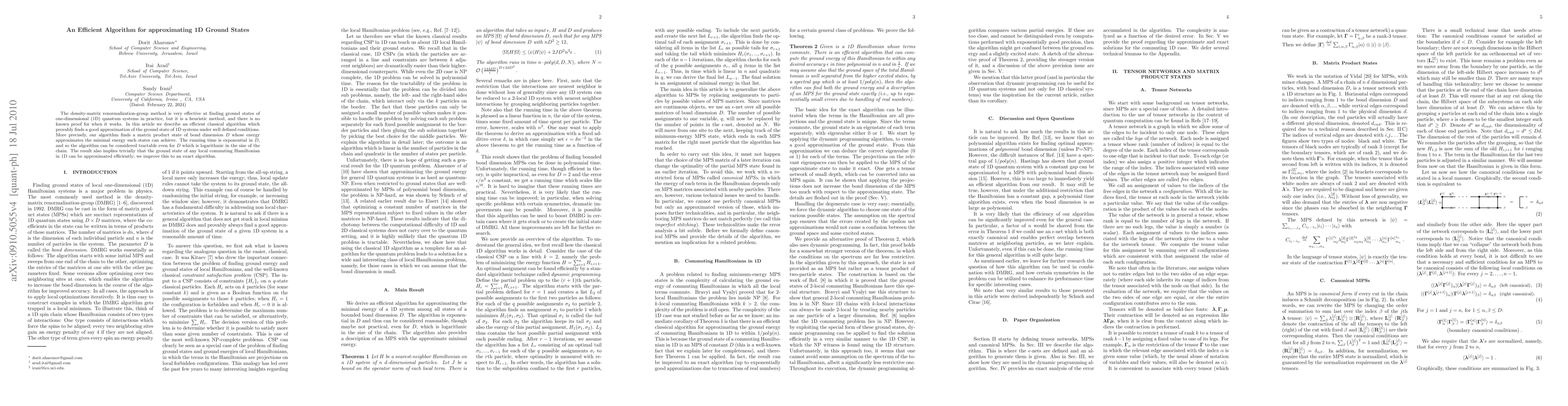 This paper presents a classical algorithm that efficiently approximates the ground state of 1D quantum systems, providing a provable guarantee under specific conditions. The algorithm constructs a Matrix Product State with a bond dimension $D$, achieving an energy close to the minimum, with an exponential running time in $D$.