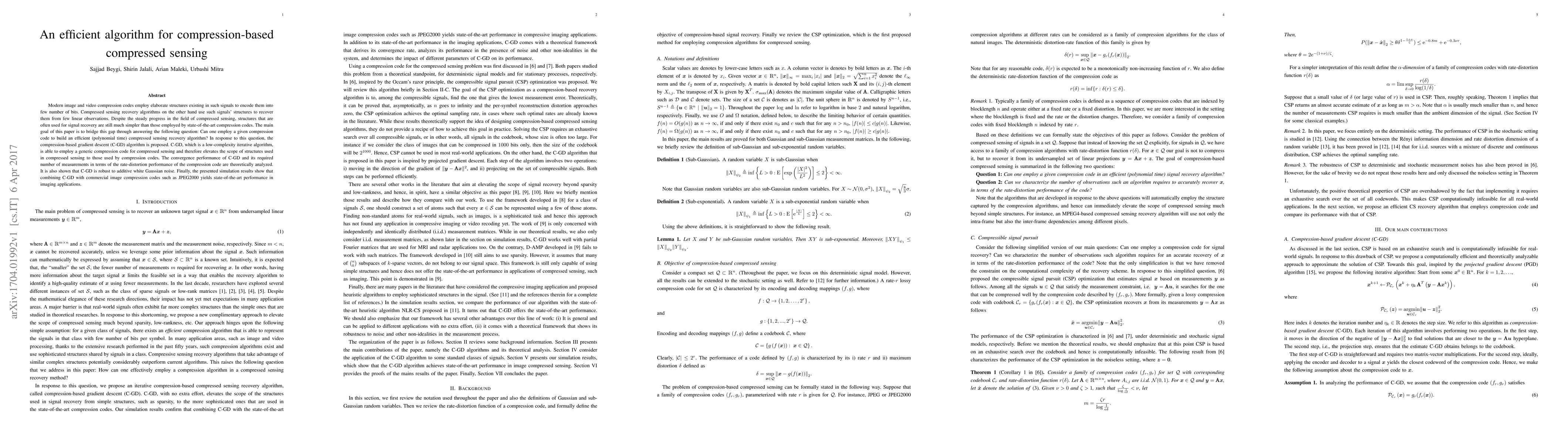 This paper proposes the compression-based gradient descent (C-GD) algorithm to bridge the gap between compressed sensing recovery and modern image compression techniques. The C-GD algorithm leverages existing compression codes to achieve efficient, low-complexity recovery, demonstrating state-of-the-art performance in imaging applications when combined with commercial codes like JPEG2000.