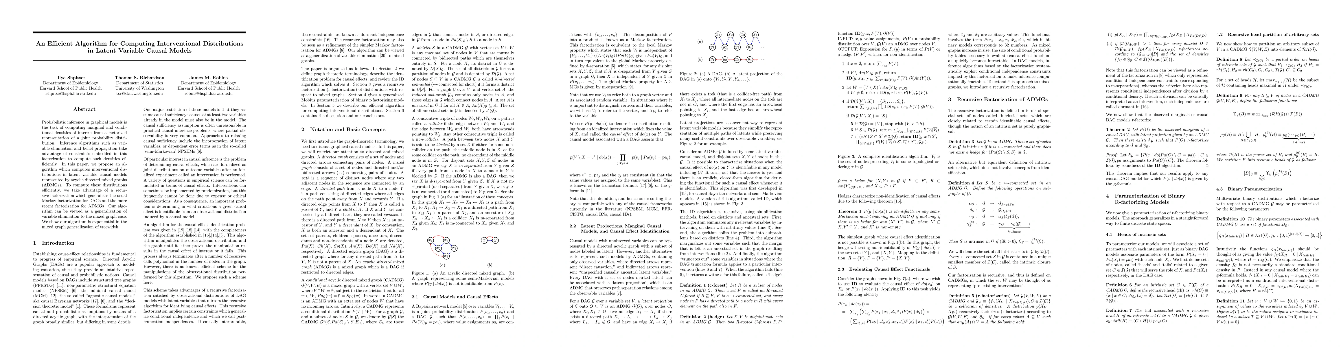 This paper proposes an efficient algorithm for computing interventional distributions in latent variable causal models represented by acyclic directed mixed graphs (ADMGs). The algorithm leverages a recursive factorization to generalize variable elimination, demonstrating exponential efficiency relative to the mixed graph's generalization of treewidth.