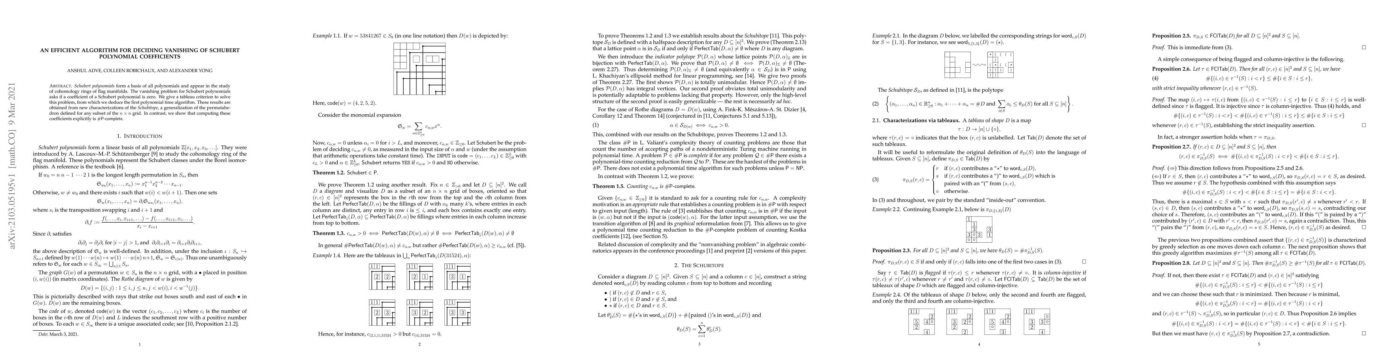 The paper presents a polynomial time algorithm for determining if coefficients of Schubert polynomials vanish, using a new tableau criterion and characterizations of the Schubitope. In contrast, it proves that explicitly computing these coefficients is computationally intractable, being #P-complete.