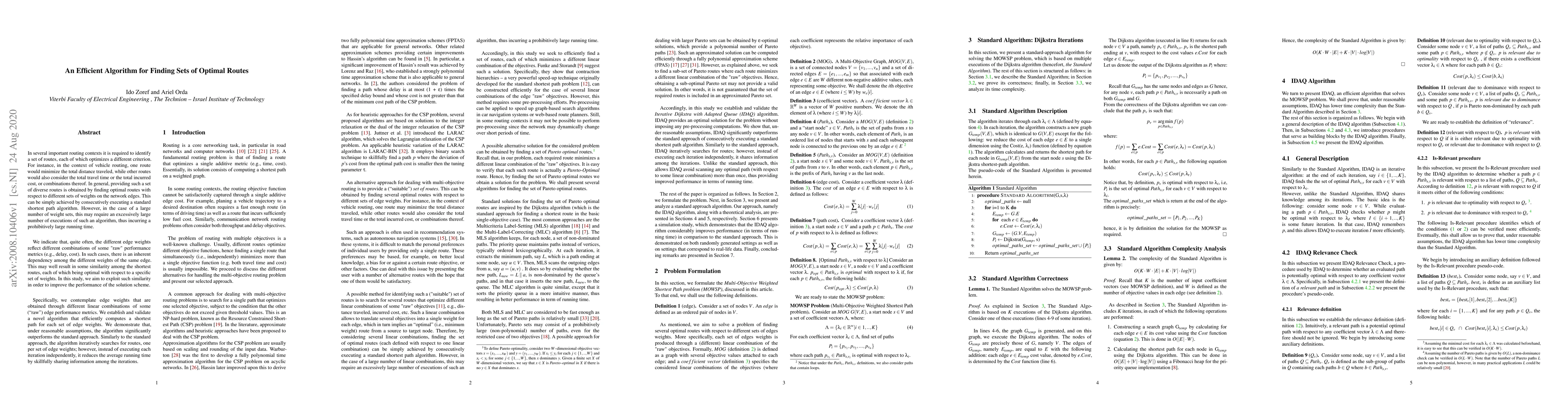 The paper presents an efficient algorithm for finding sets of optimal routes in routing contexts, exploiting dependencies among different edge weights to reduce running time.