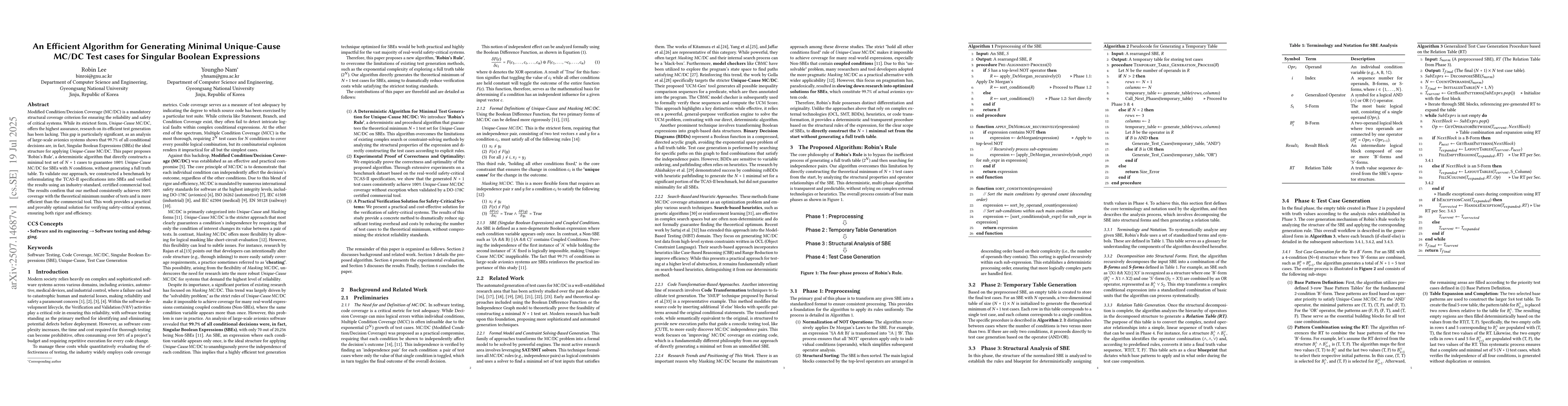 Modified Condition/Decision Coverage (MC/DC) is a mandatory structural coverage criterion for ensuring the reliability and safety of critical systems. While its strictest form, Unique-Cause MC/DC, offers the highest assurance, research on its efficient test generation has been lacking. This gap is particularly significant, as an analysis of large-scale avionics systems shows that 99.7% of all conditional decisions are, in fact, Singular Boolean Expressions (SBEs) the ideal structure for applying Unique-Cause MC/DC. This paper proposes 'Robin's Rule', a deterministic algorithm that directly constructs a minimal test set of N + 1 cases to guarantee 100% Unique-Cause MC/DC for SBEs with N conditions, without generating a full truth table. To validate our approach, we constructed a benchmark by reformulating the TCAS-II specifications into SBEs and verified the results using an industry-standard, certified commercial tool. The results confirm that our method consistently achieves 100% coverage with the theoretical minimum number of tests and is more efficient than the commercial tool. This work provides a practical and provably optimal solution for verifying safety-critical systems, ensuring both rigor and efficiency.