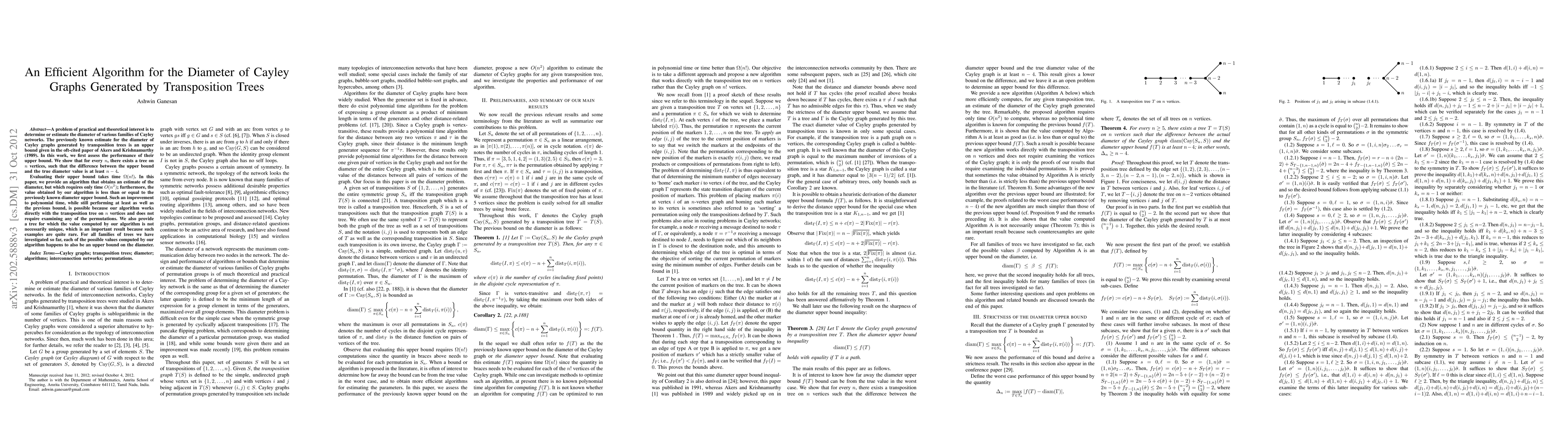 Researchers have developed an algorithm to estimate the diameter of Cayley graphs generated by transposition trees with a time complexity of $O(n^2)$, improving upon a previous upper bound that took $ heta(n!)$. The new algorithm provides more accurate estimates for specific families of trees.