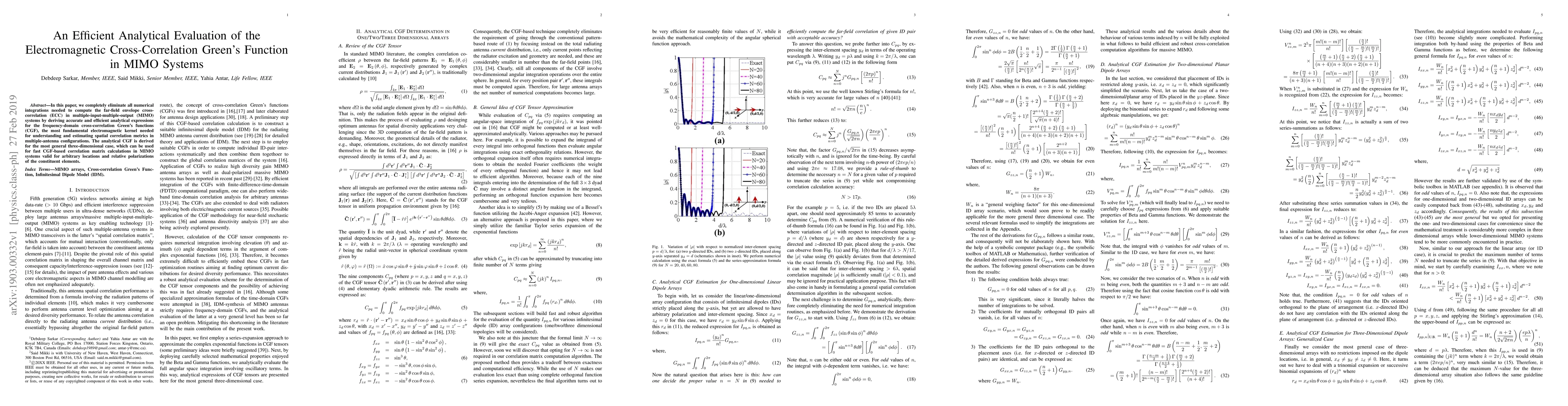 In this paper, we completely eliminate all numerical integrations needed to compute the far-field envelope cross-correlation (ECC) in multiple-input-multiple-output (MIMO) systems by deriving accurate and efficient analytical expressions for the frequency-domain cross-correlation Green's functions (CGF), the most fundamental electromagnetic kernel needed for understanding and estimating spatial correlation metrics in multiple-antenna configurations. The analytical CGF is derived for the most general three-dimensional case, which can be used for fast CGF-based correlation matrix calculations in MIMO systems valid for arbitrary locations and relative polarizations of the constituent elements.