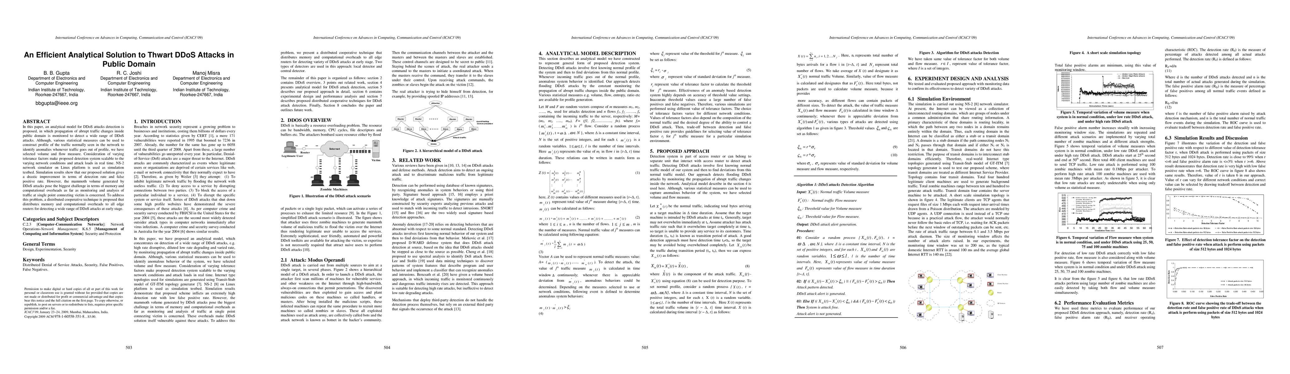 This paper proposes an analytical model to detect DDoS attacks in public domains, showing improved detection rates and reduced false positives with a scalable solution that can handle varying network conditions.