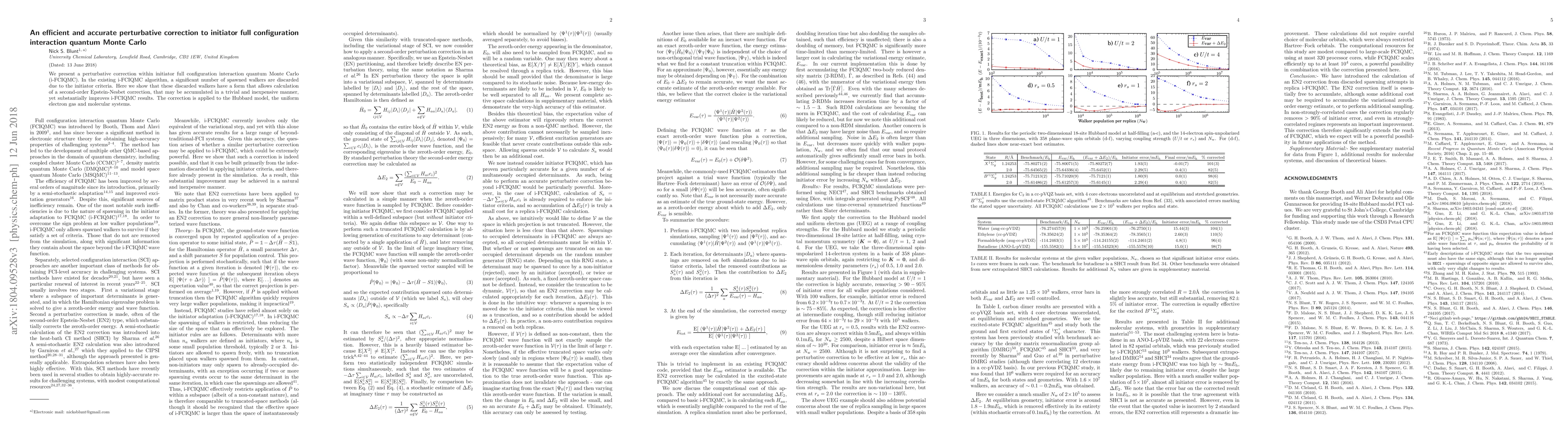 This paper introduces a perturbative correction method to enhance initiator full configuration interaction quantum Monte Carlo (i-FCIQMC) by calculating a second-order Epstein-Nesbet correction from discarded walkers, improving accuracy without significant computational cost. The method is demonstrated on the Hubbard model, uniform electron gas, and molecular systems.