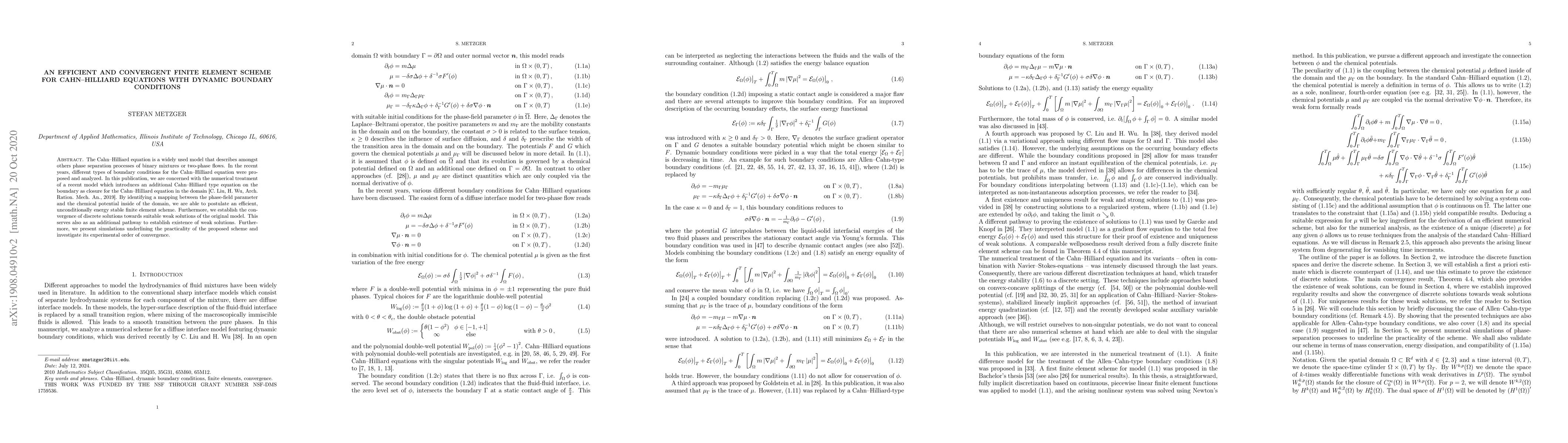 The Cahn--Hilliard equation is a widely used model that describes amongst others phase separation processes of binary mixtures or two-phase flows. In the recent years, different types of boundary conditions for the Cahn--Hilliard equation were proposed and analyzed. In this publication, we are concerned with the numerical treatment of a recent model which introduces an additional Cahn--Hilliard type equation on the boundary as closure for the Cahn--Hilliard equation in the domain [C. Liu, H. Wu, Arch. Ration. Mech. An., 2019]. By identifying a mapping between the phase-field parameter and the chemical potential inside of the domain, we are able to postulate an efficient, unconditionally energy stable finite element scheme. Furthermore, we establish the convergence of discrete solutions towards suitable weak solutions of the original model. This serves also as an additional pathway to establish existence of weak solutions. Furthermore, we present simulations underlining the practicality of the proposed scheme and investigate its experimental order of convergence.