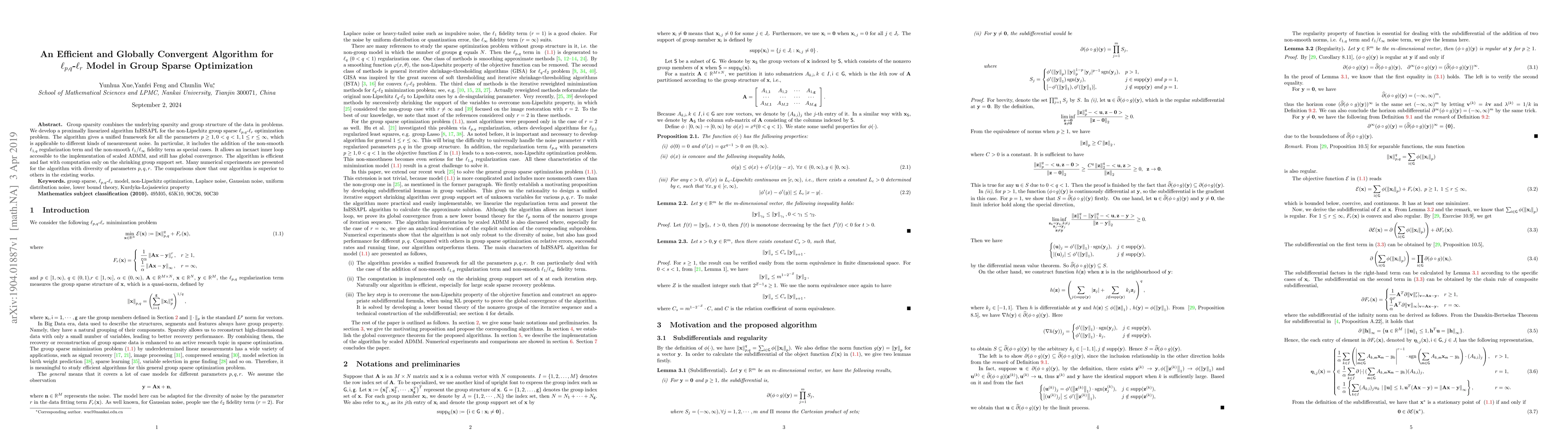 Summary: This paper introduces a proximally linearized algorithm, InISSAPL, for solving non-Lipschitz group sparse $\ell_{p,q}$-$\ell_r$ optimization problems, ensuring efficient and globally convergent solutions. The method leverages the inherent sparsity and group structure of the data.