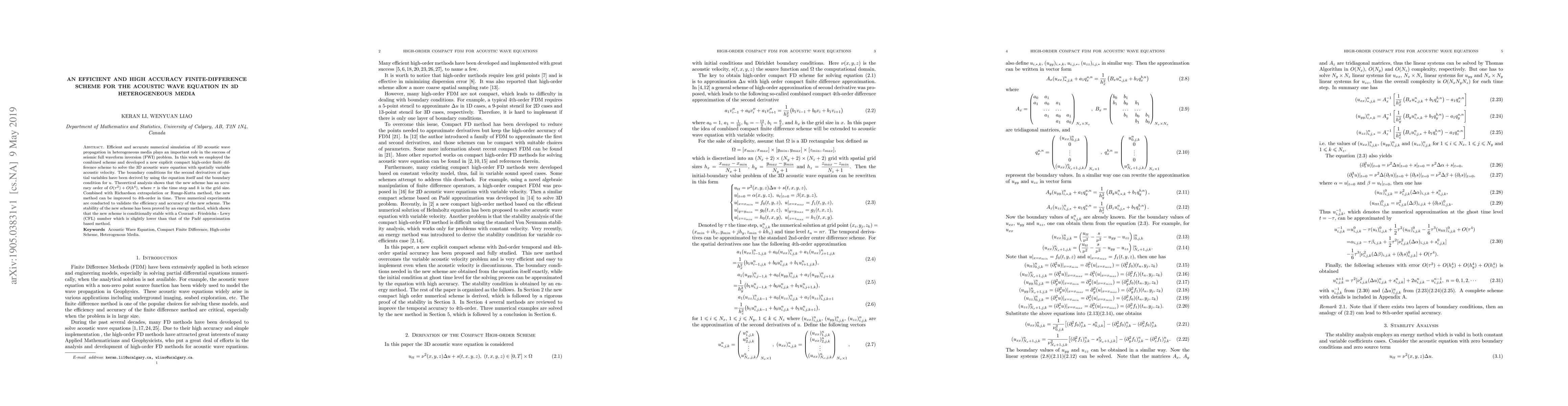 This paper introduces a new explicit compact high-order finite difference scheme for solving the 3D acoustic wave equation in heterogeneous media, achieving accuracy of $O(\tau^2) + O(h^4)$, and can be improved to 4th-order in time. The method is validated by three numerical experiments and proven stable via an energy method.