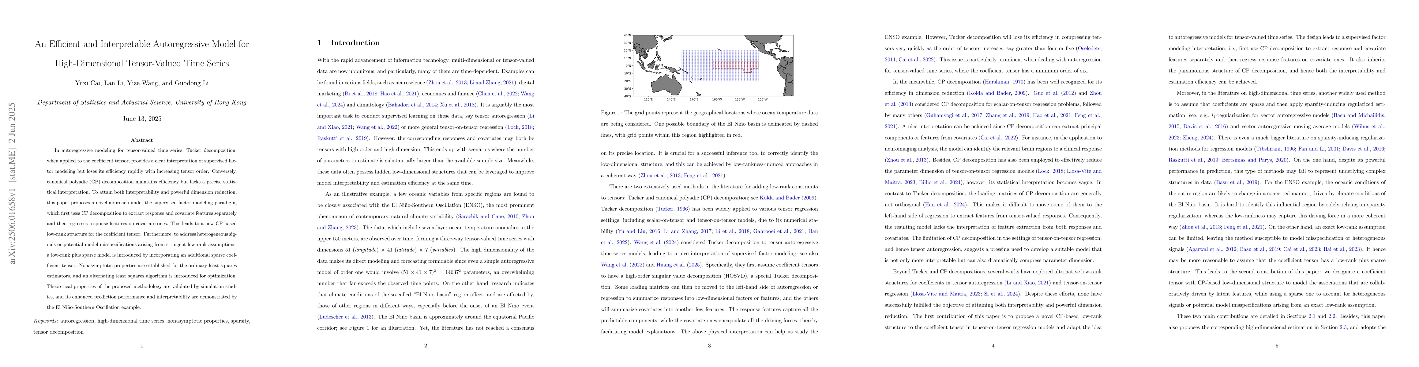 This research is important as it bridges the gap between interpretability and efficiency in autoregressive modeling for high-dimensional tensor-valued time series, which has applications in various fields such as climate science, bioinformatics, and finance.