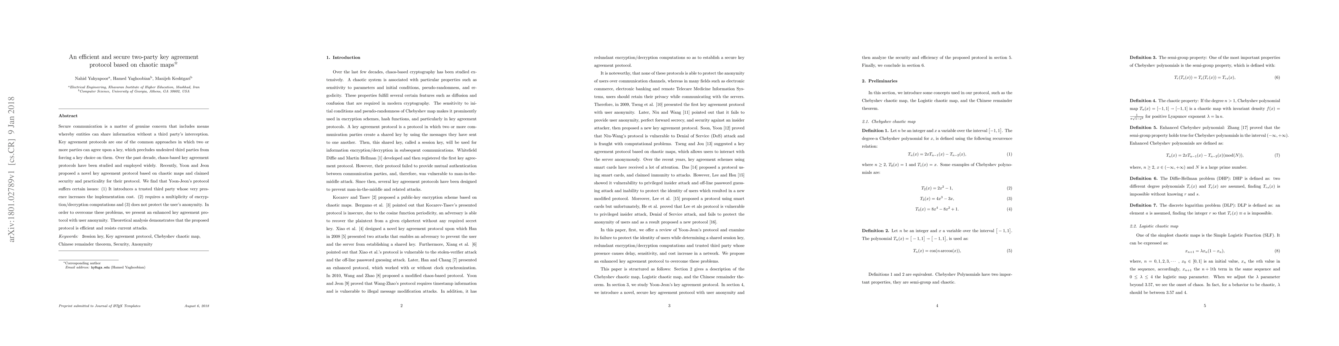 Secure communication is a matter of genuine concern that includes means whereby entities can share information without a third party's interception. Key agreement protocols are one of the common approaches in which two or more parties can agree upon a key, which precludes undesired third parties from forcing a key choice on them. Over the past decade, chaos-based key agreement protocols have been studied and employed widely. Recently, Yoon and Jeon proposed a novel key agreement protocol based on chaotic maps and claimed security and practicality for their protocol. We find that Yoon-Jeon's protocol suffers certain issues: (1) It introduces a trusted third party whose very presence increases the implementation cost. (2) requires a multiplicity of encryption/decryption computations and (3) does not protect the user's anonymity. In order to overcome these problems, we present an enhanced key agreement protocol with user anonymity. Theoretical analysis demonstrates that the proposed protocol is efficient and resists current attacks.