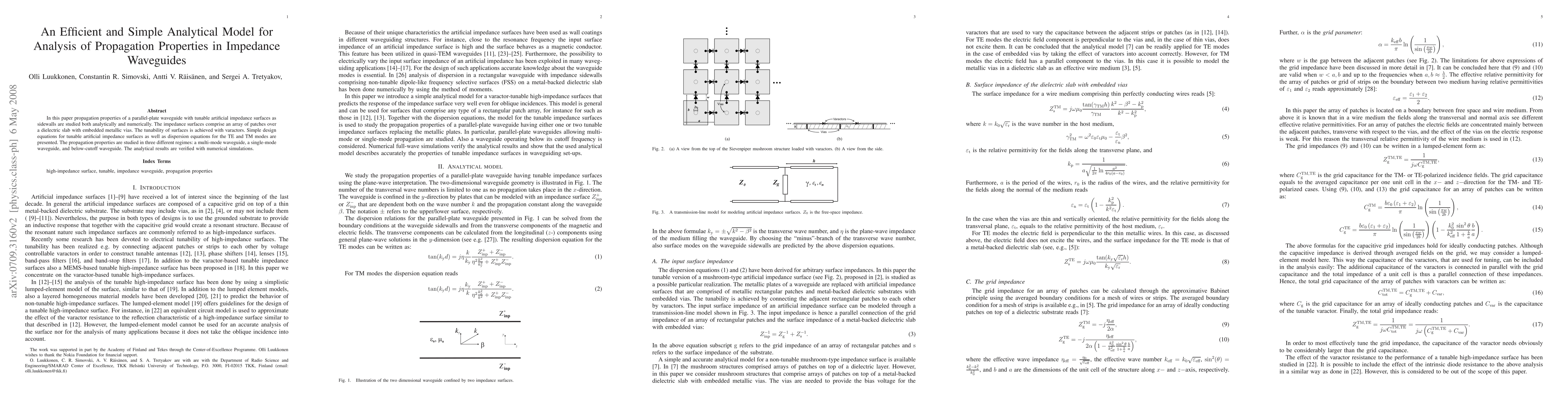 This paper presents an analytical model for studying propagation in parallel-plate waveguides with tunable impedance surfaces, featuring patches and metallic vias. The model provides simple design equations and dispersion equations for TE and TM modes, validated through numerical simulations across multi-mode, single-mode, and below-cutoff regimes.
