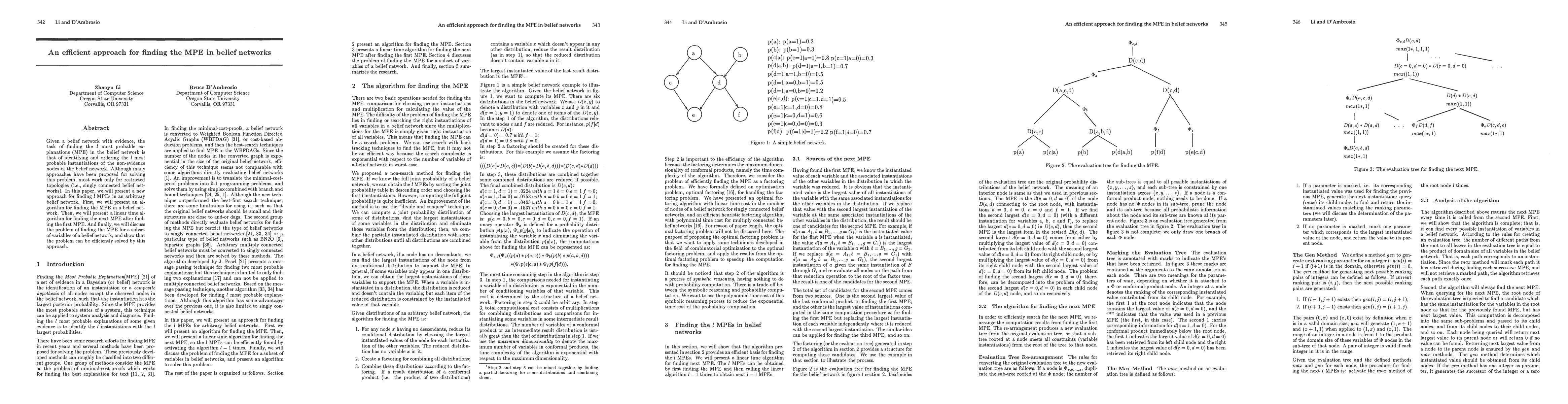 This paper introduces an efficient algorithm for identifying the top I most probable explanations (MPE) in belief networks, applicable to arbitrary network topologies, not just singly connected ones. It presents a linear time method for finding subsequent MPEs after the first one and efficiently solves the problem for subsets of variables.