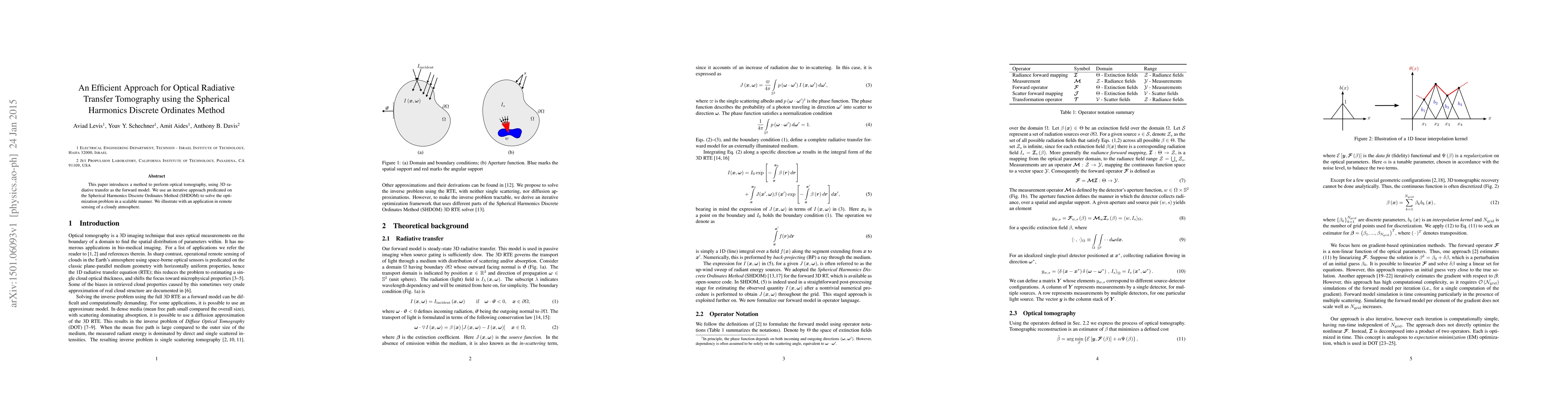 This paper proposes an efficient iterative method for optical radiative transfer tomography based on the Spherical Harmonics Discrete Ordinates Method (SHDOM) to solve the optimization problem. The method is demonstrated through its application in remote sensing of a cloudy atmosphere.