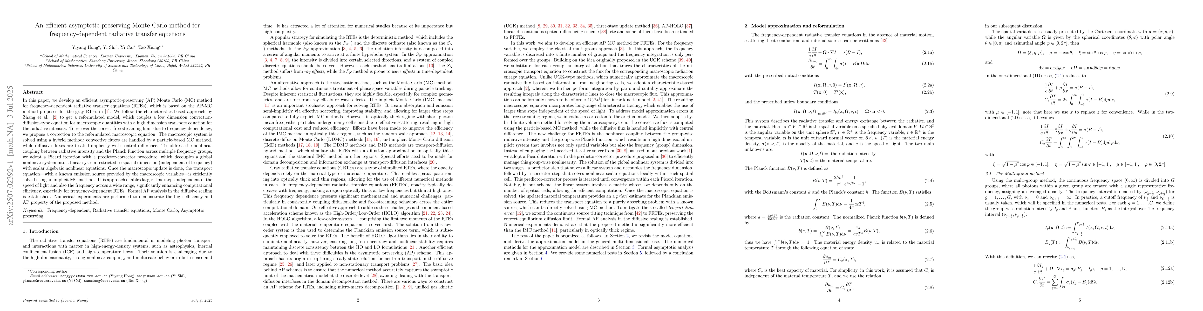 In this paper, we develop an efficient asymptotic-preserving (AP) Monte Carlo (MC) method for frequency-dependent radiative transfer equations (RTEs), which is based on the AP-MC method proposed for the gray RTEs in \cite{shi2023efficient}. We follow the characteristics-based approach by Zhang et al. \cite{zhang2023asymptotic} to get a reformulated model, which couples a low dimension convection-diffusion-type equation for macroscopic quantities with a high dimension transport equation for the radiative intensity. To recover the correct free streaming limit due to frequency-dependency, we propose a correction to the reformulated macroscopic equation. The macroscopic system is solved using a hybrid method: convective fluxes are handled by a particle-based MC method, while diffusive fluxes are treated implicitly with central difference. To address the nonlinear coupling between radiative intensity and the Planck function across multiple frequency groups, we adopt a Picard iteration with a predictor-corrector procedure, which decouples a global nonlinear system into a linear system restricted to spatial dimension (independent of frequency) with scalar algebraic nonlinear equations. Once the macroscopic update is done, the transport equation, with a known emission source provided by the macroscopic variables, is efficiently solved using an implicit MC method. This approach enables larger time steps independent of the speed of light and also the frequency across a wide range, significantly enhancing computational efficiency, especially for frequency-dependent RTEs. Formal AP analysis in the diffusive scaling is established. Numerical experiments are performed to demonstrate the high efficiency and AP property of the proposed method.