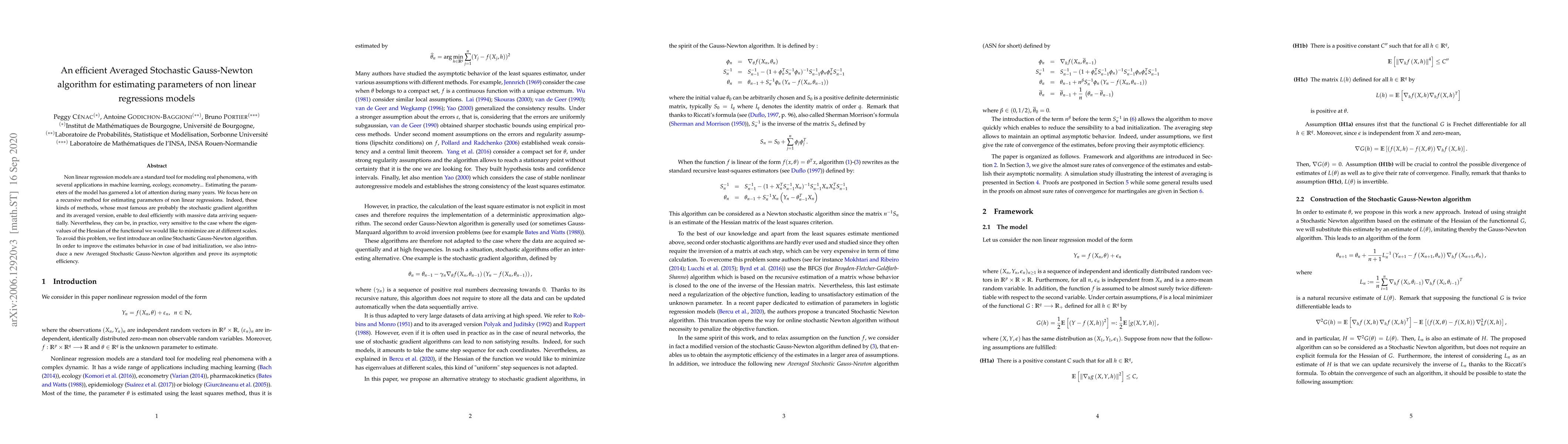 This paper proposes an efficient Averaged Stochastic Gauss-Newton algorithm for estimating parameters in non-linear regression models, addressing sensitivity issues with eigenvalue scaling. It introduces an online variant and proves the asymptotic efficiency of the averaged version for better initialization robustness.