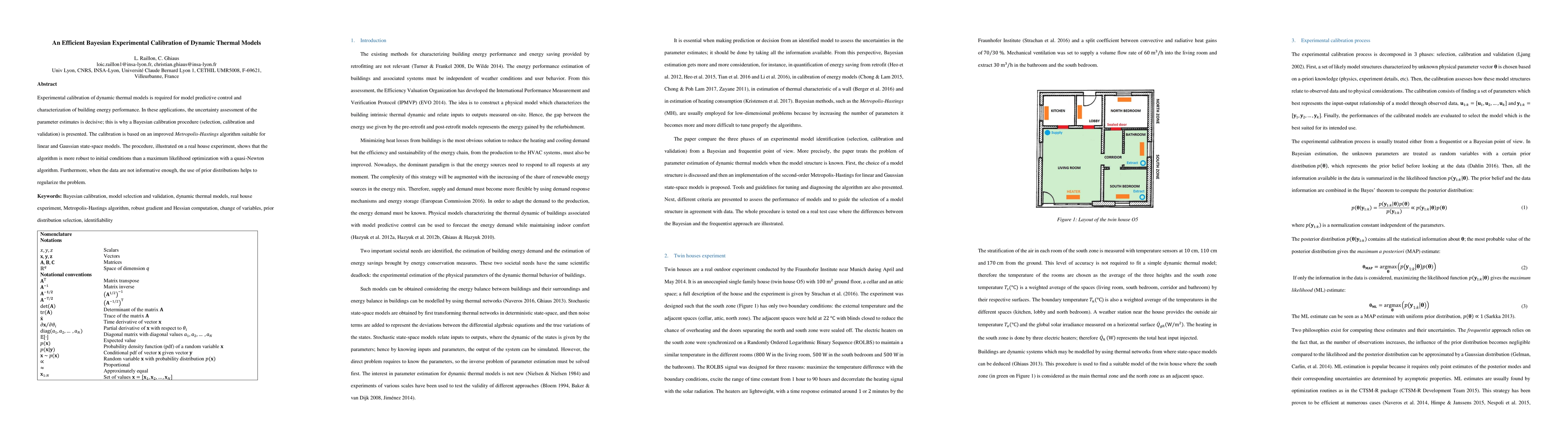 A Bayesian calibration procedure is presented for dynamic thermal models, showing improved robustness to initial conditions compared to traditional optimization methods, with the added benefit of incorporating prior distributions to handle uninformative data.