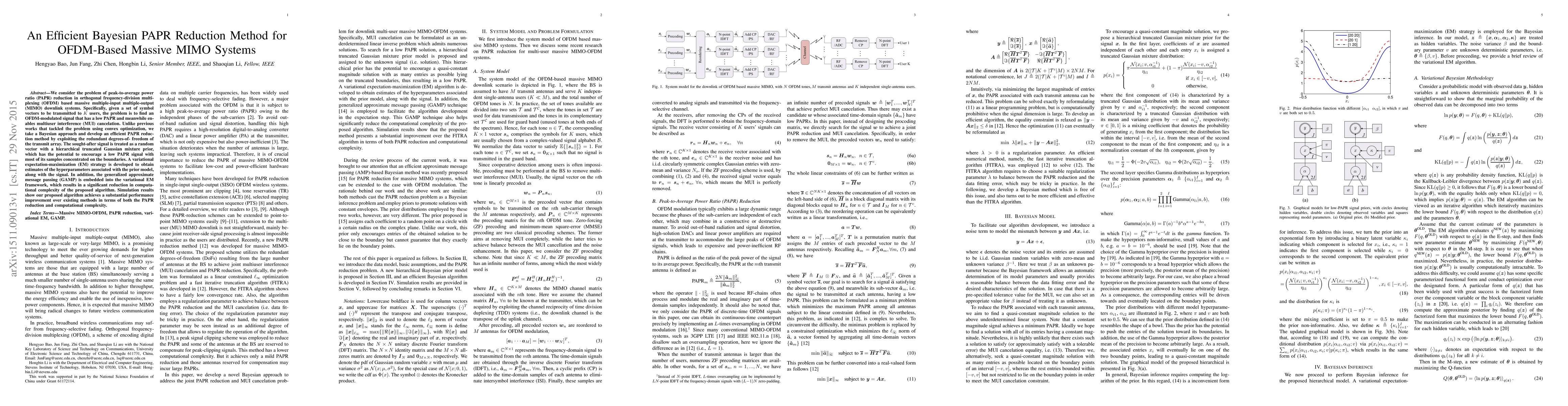 This paper proposes a Bayesian method for reducing peak-to-average power ratio (PAPR) in OFDM-based massive MIMO systems, leveraging the redundant degrees-of-freedom of the transmit array. The method employs a hierarchical truncated Gaussian mixture prior and variational EM with embedded GAMP to achieve efficient PAPR reduction and computational complexity reduction, outperforming existing convex optimization approaches.
