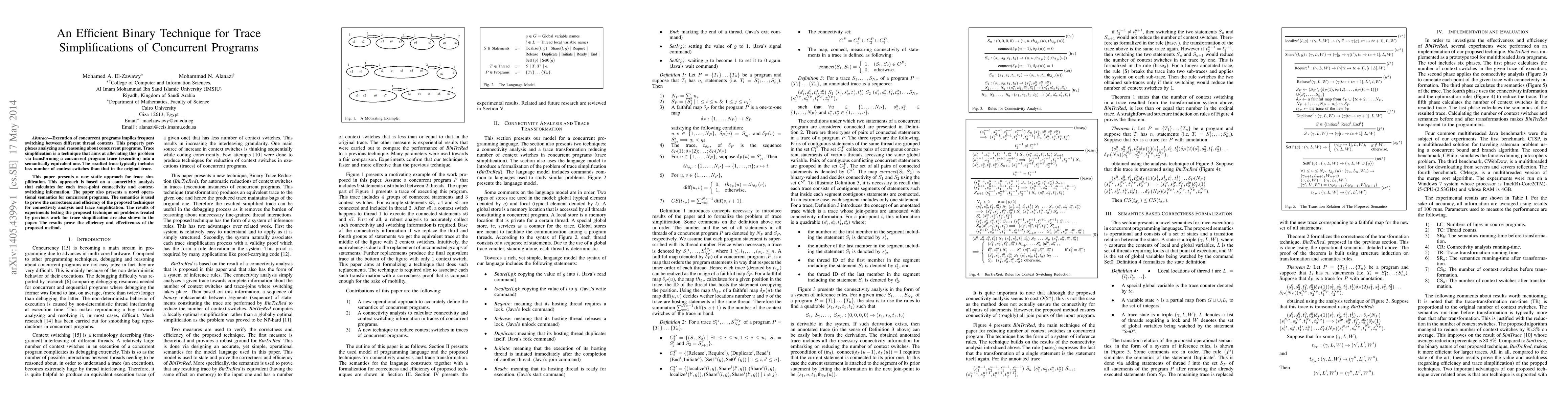 This paper introduces a novel static technique for trace simplification in concurrent programs, utilizing a connectivity analysis to reduce context switches. The method employs a new operational semantics to ensure correctness and efficiency, with experimental results demonstrating its effectiveness compared to previous approaches.