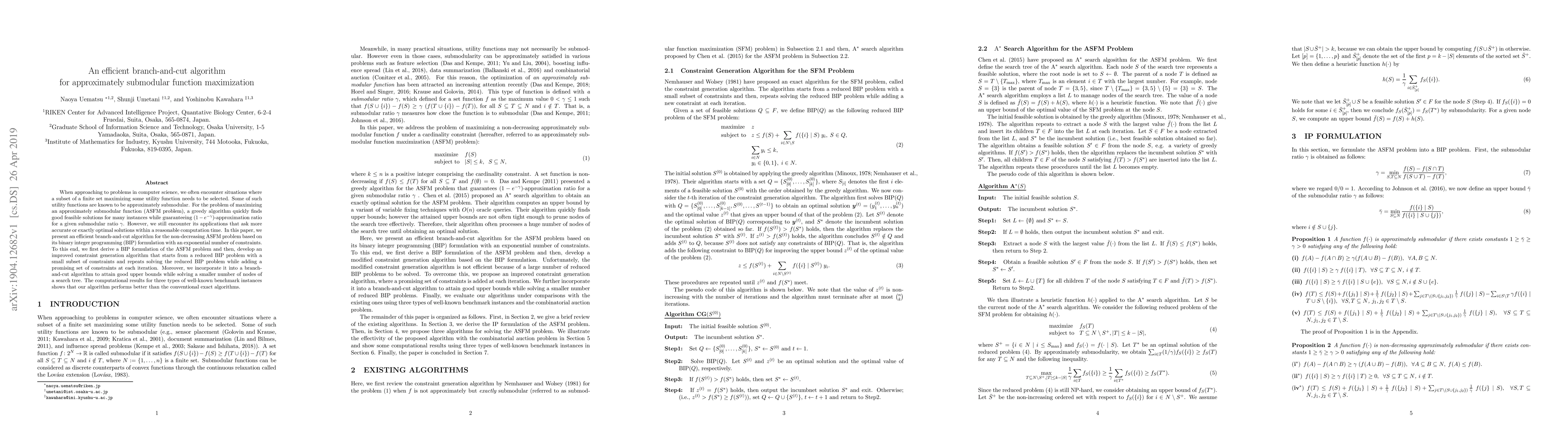 This paper presents an efficient branch-and-cut algorithm for solving the non-decreasing approximately submodular function maximization problem, outperforming conventional exact algorithms on benchmark instances. The approach involves a binary integer programming formulation and an iterative constraint generation method to improve solution quality while reducing computational load.