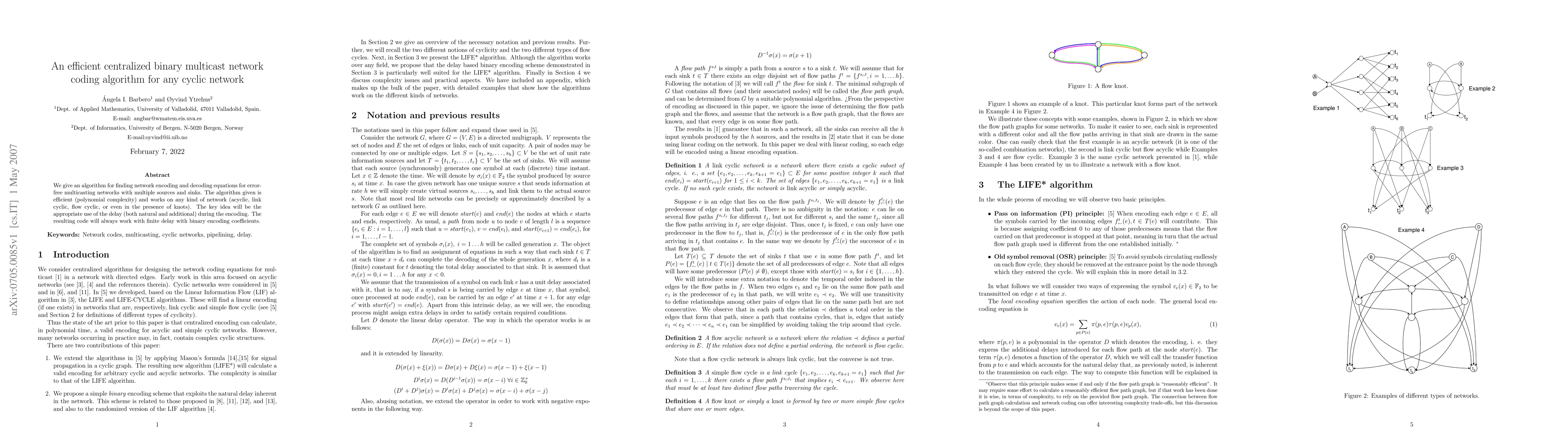 We give an algorithm for finding network encoding and decoding equations for error-free multicasting networks with multiple sources and sinks. The algorithm given is efficient (polynomial complexity) and works on any kind of network (acyclic, link cyclic, flow cyclic, or even in the presence of knots). The key idea will be the appropriate use of the delay (both natural and additional) during the encoding. The resulting code will always work with finite delay with binary encoding coefficients.